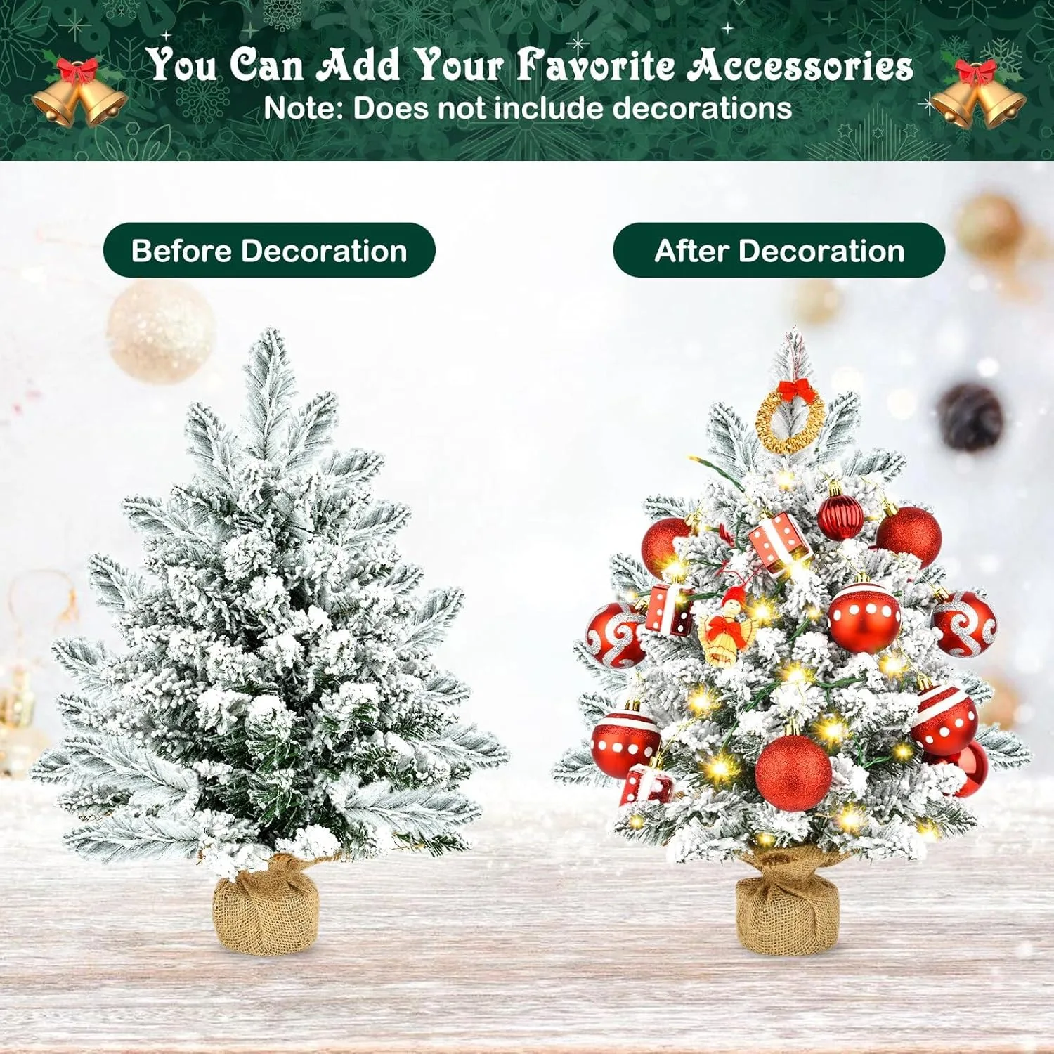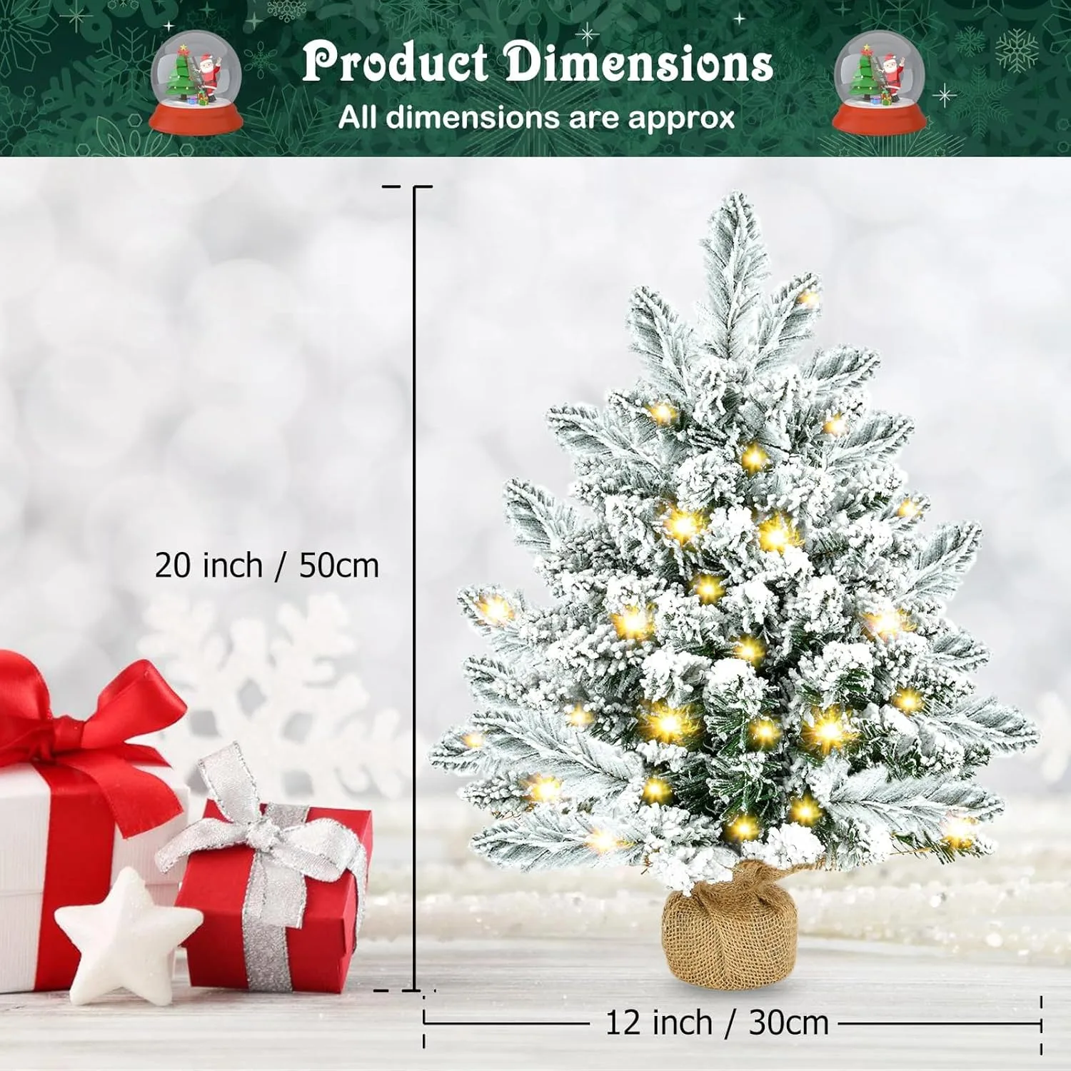 Nuestro pequeño árbol de Navidad con luces está meticulosamente cubierto de nieve blanca artificial realista.Hay una cadena de luces que funciona con 3 pilas AA (No Incluidas).