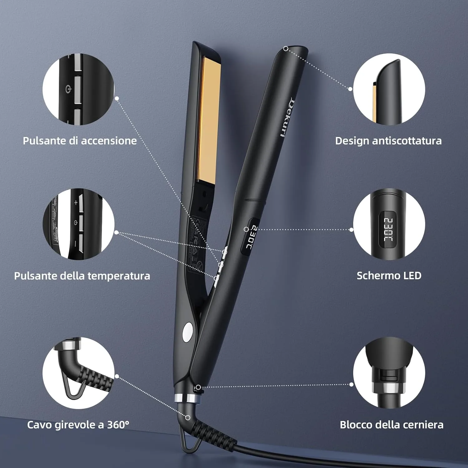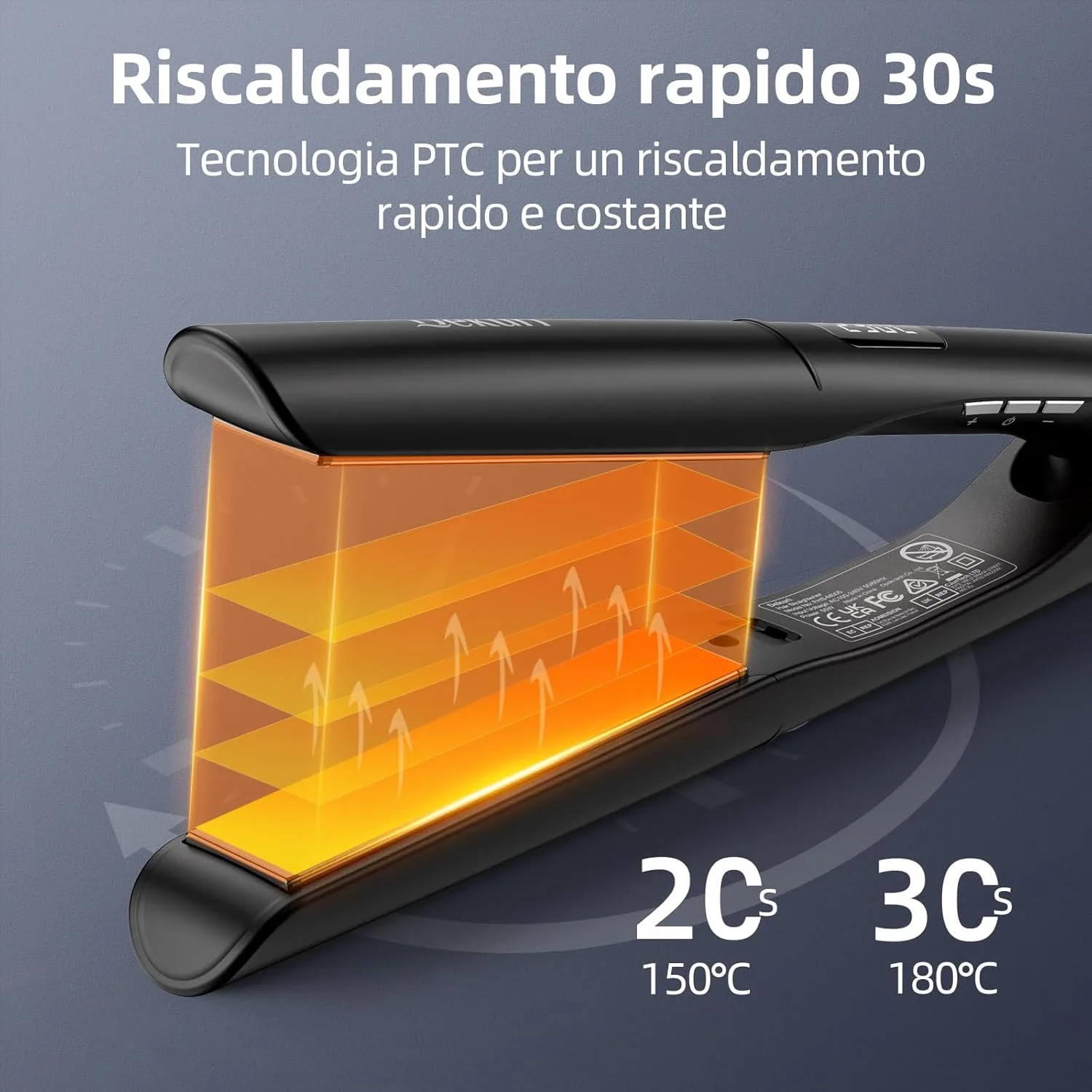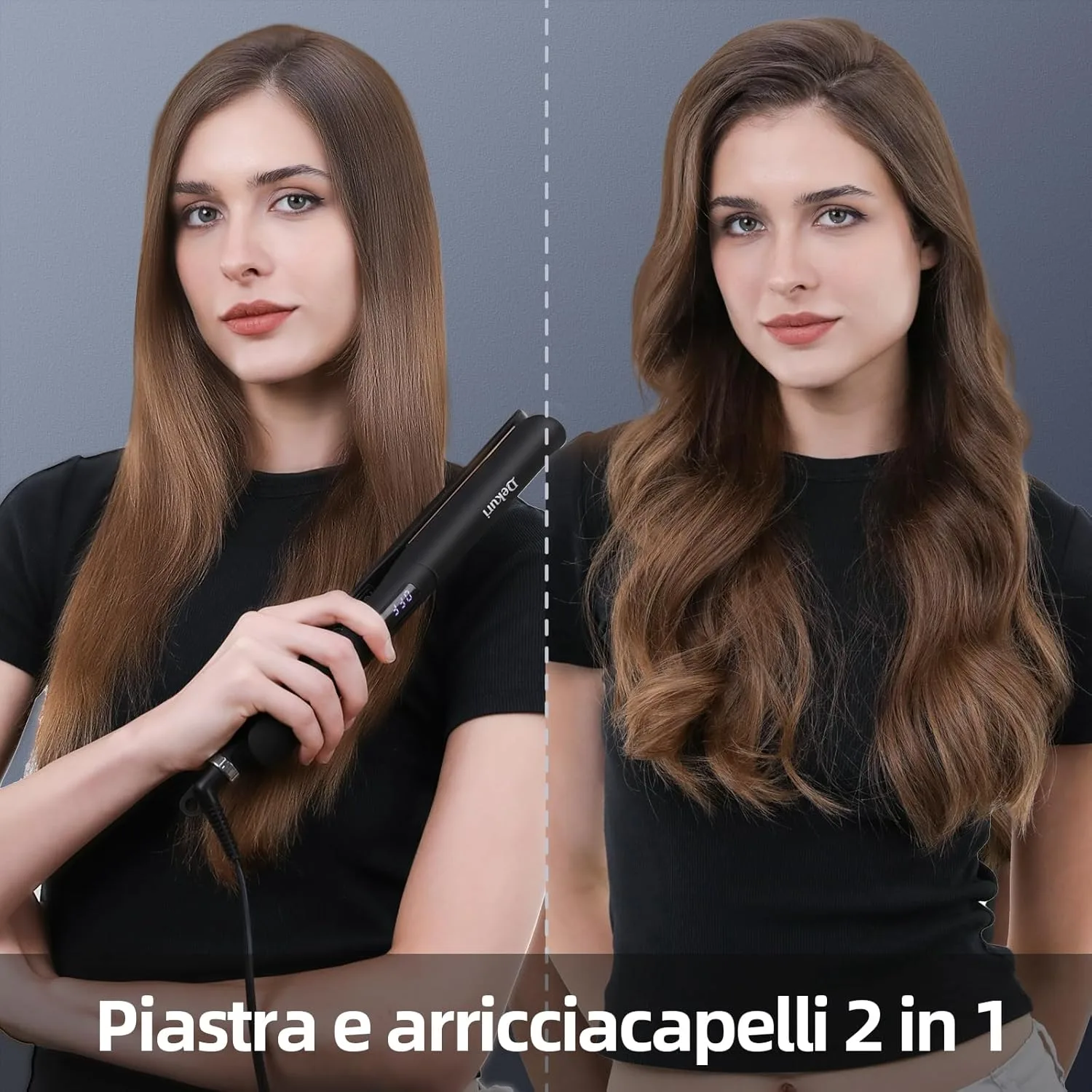 Dekuri Planchas del Pelo y Rizadora 2 en 1, Placas Lisas de Titanio, Calentamiento Rápido en 30s, Pantalla LCD 120-230℃, Plancha Pelo Iónicas para Mujeres, Negro