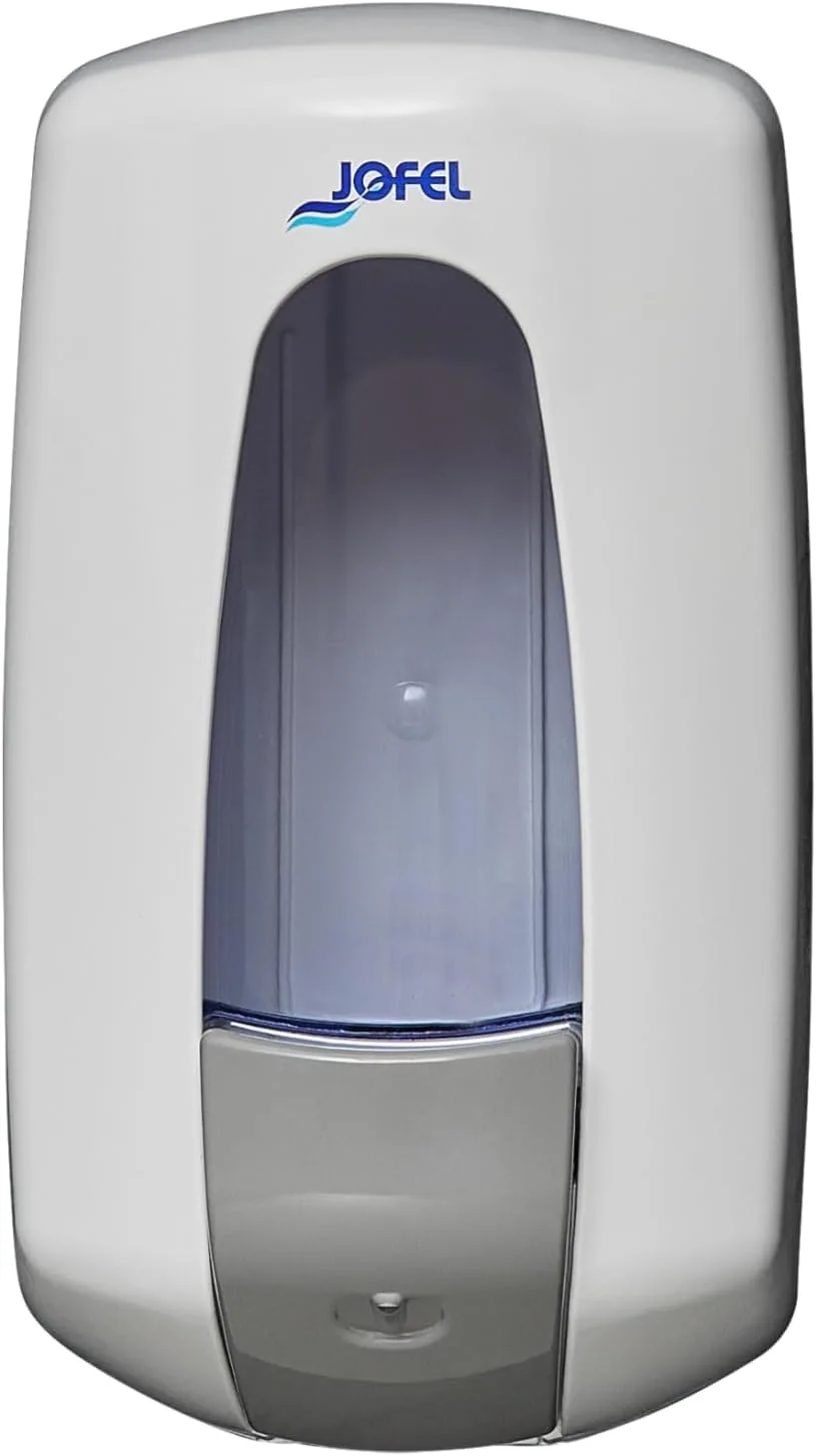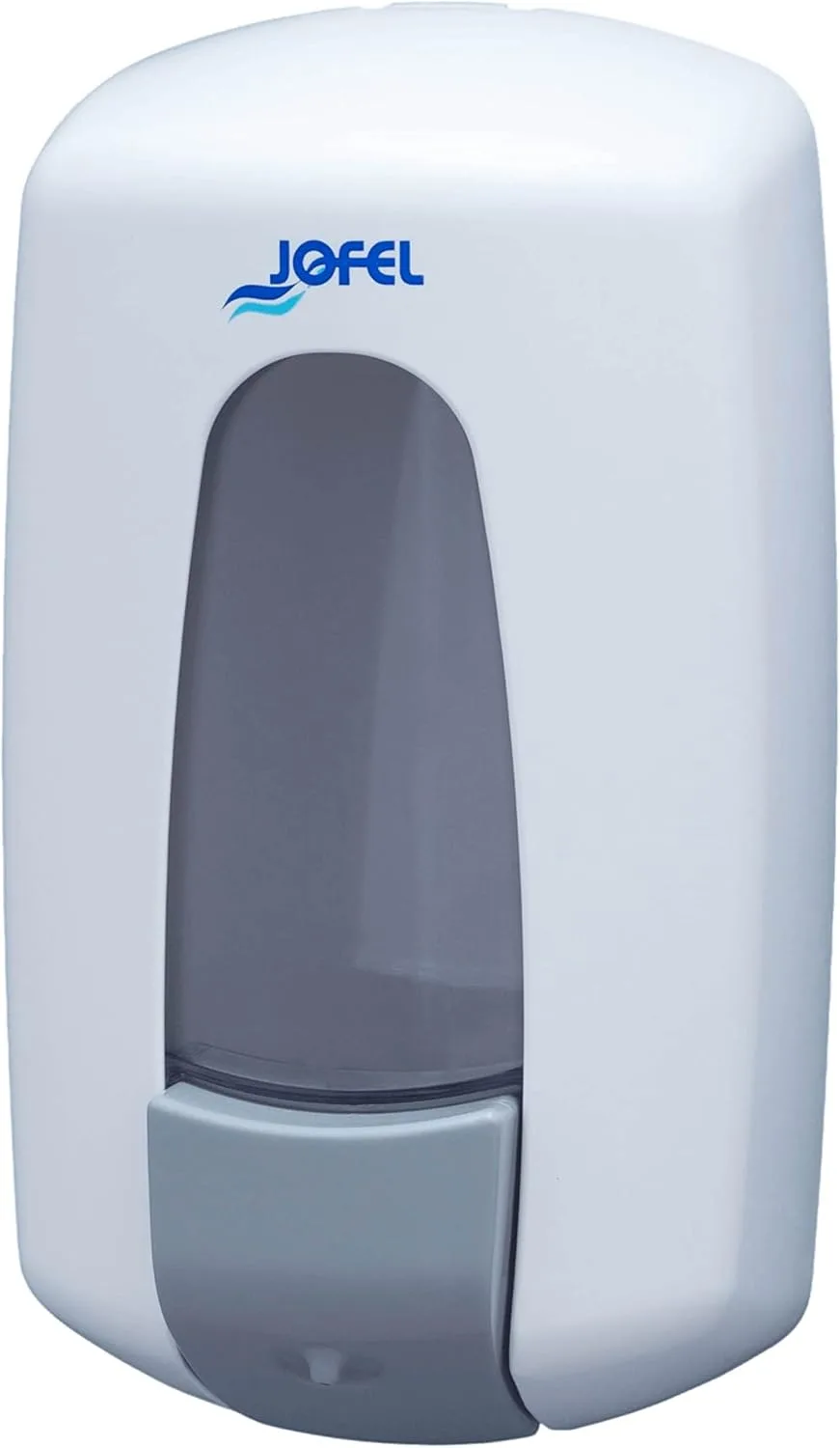 Jofel – Dosificador de Jabón Líquido para Pared, Recargable con Capacidad para 0.9L, Dispensador Jabón Baño Rellenable, Válvula Anticorrosión y Antigoteo, Carcasa ABS, Aitana AC70000, Blanco