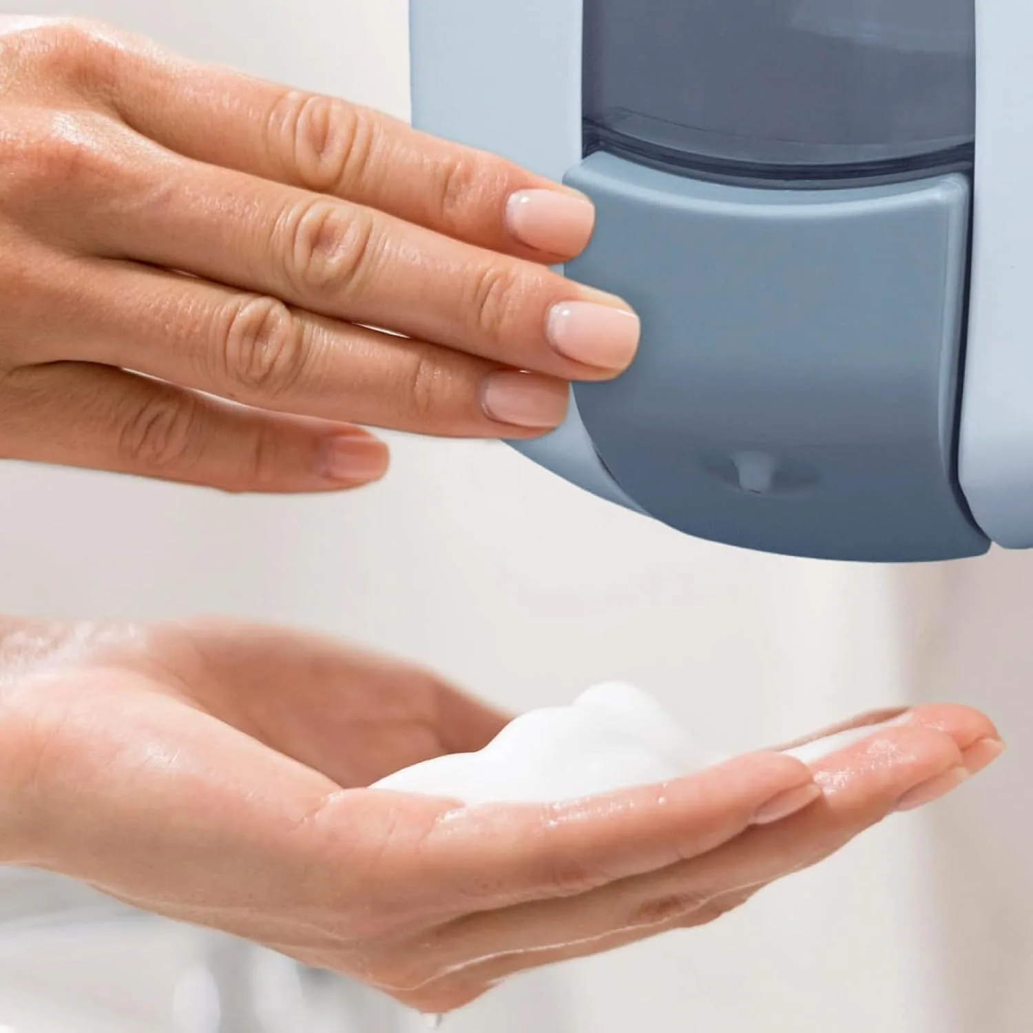 🤲 -Dosificador de jabón líquido con depósito rellenable. -Depósito transparente en SAN de 0,9 Lts. -Soporte, carcasa y válvula en ABS de alta calidad y resistencia.