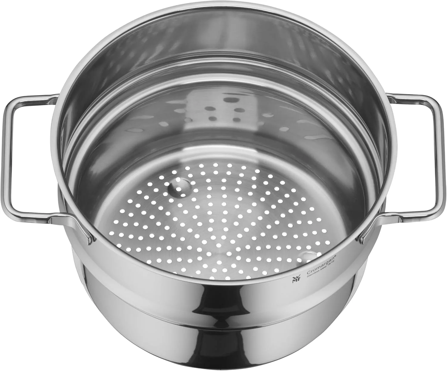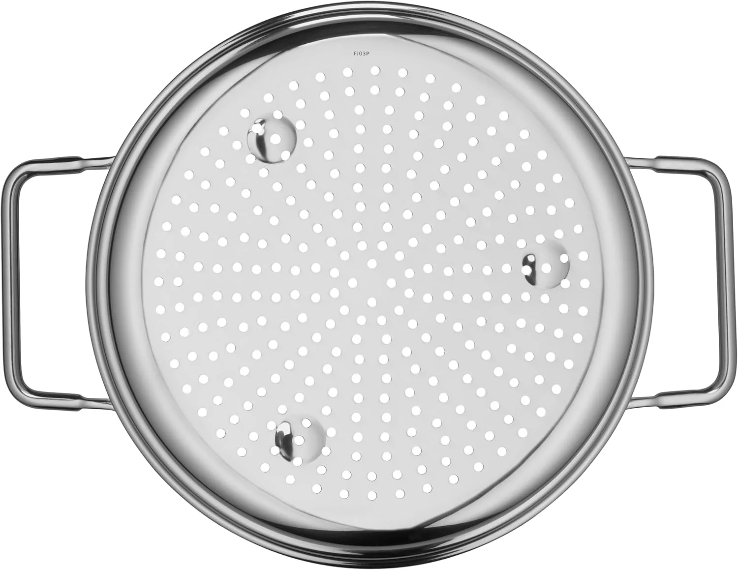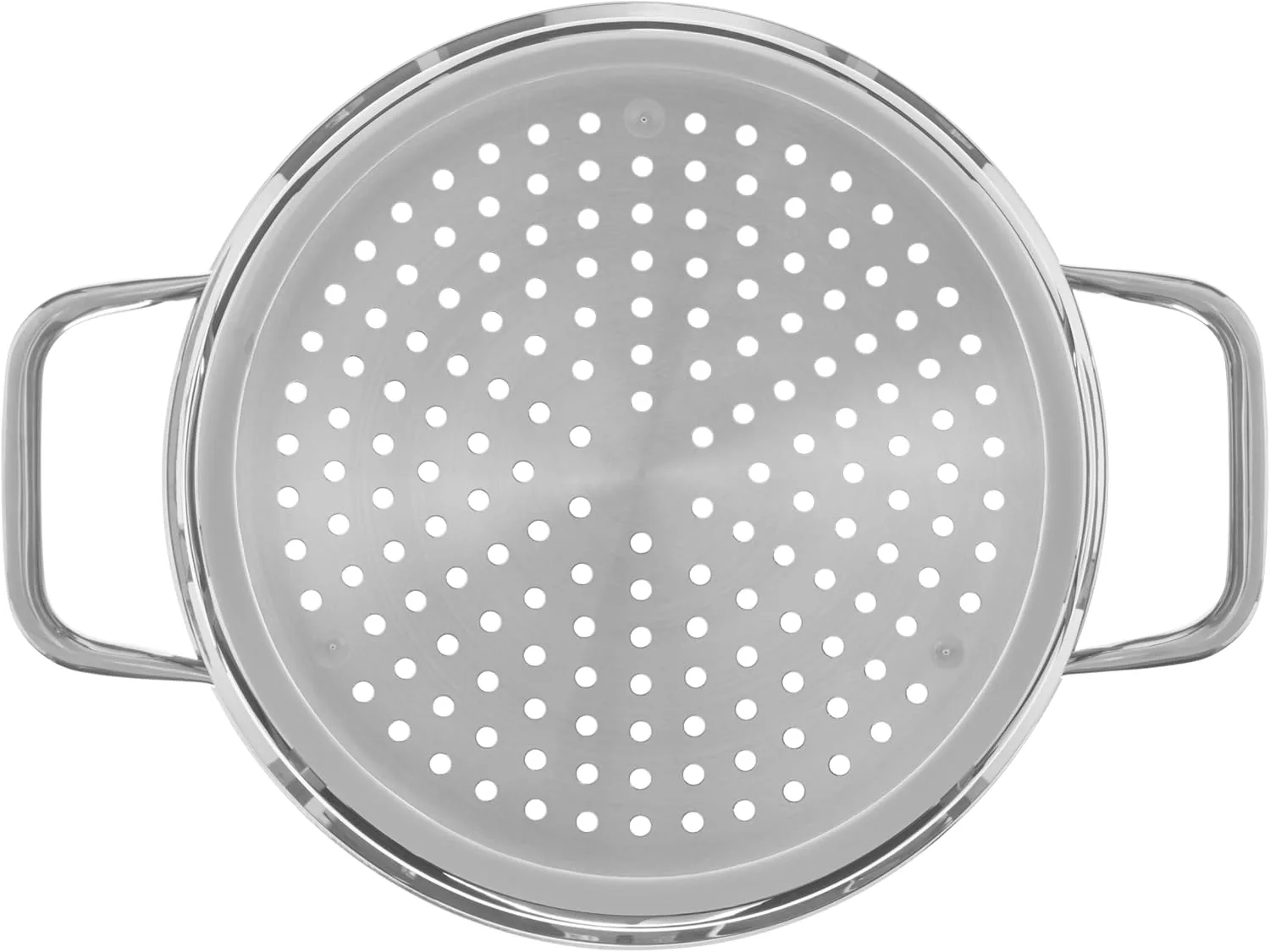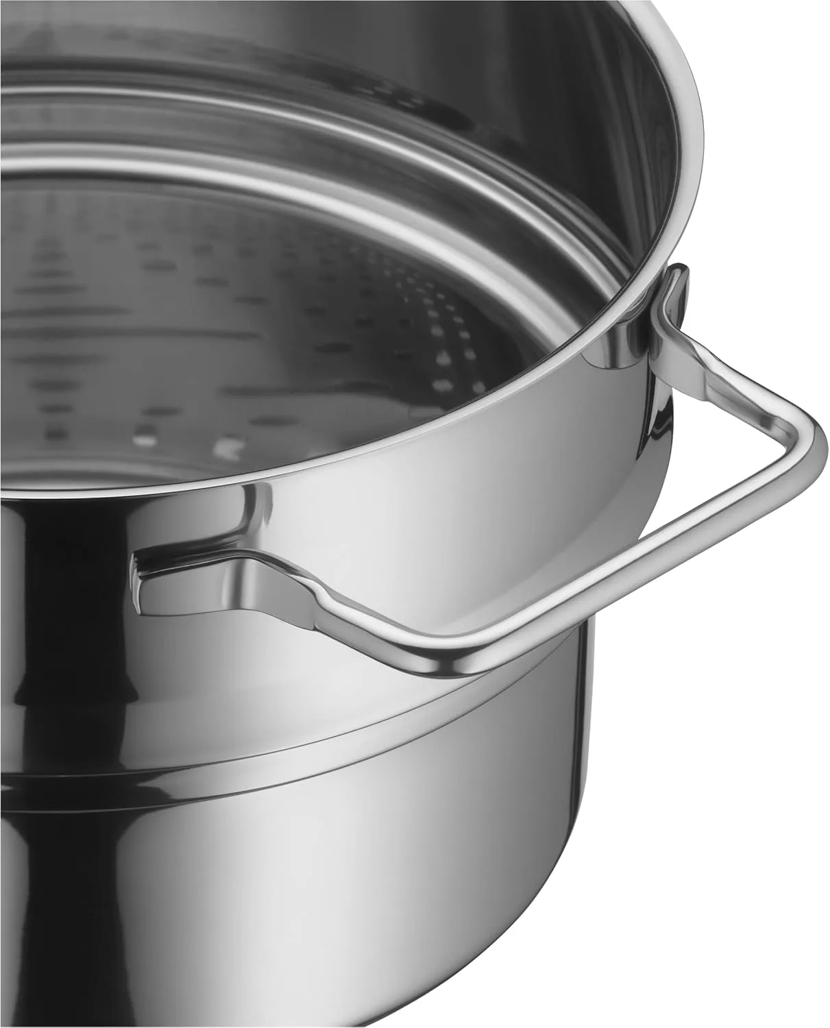 La vaporera es perfecta, buen acabado y buen encaje en la olla de 20cm, le doy 5 estrellas aunque la tuve que devolver, ya que compré una batería de cocina de la misma marca y al introducir la vaporera en la olla de su medida casi llegaba al fondo de esta, dejándo poco margen para el agua, con el consiguiente peligro de que se me quemara la olla.