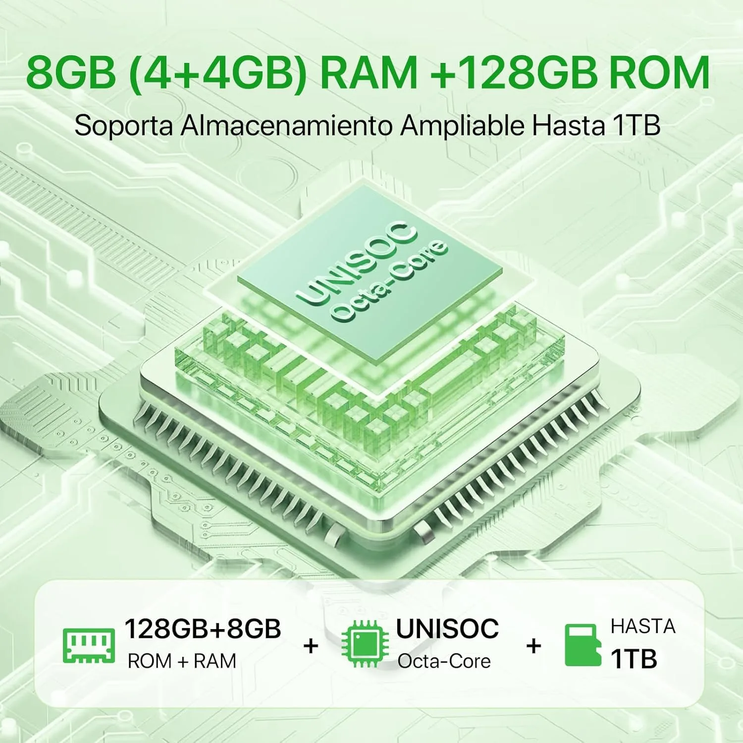 * 128GB de memoria interna, con opción de ampliarla hasta 1TB con tarjeta.