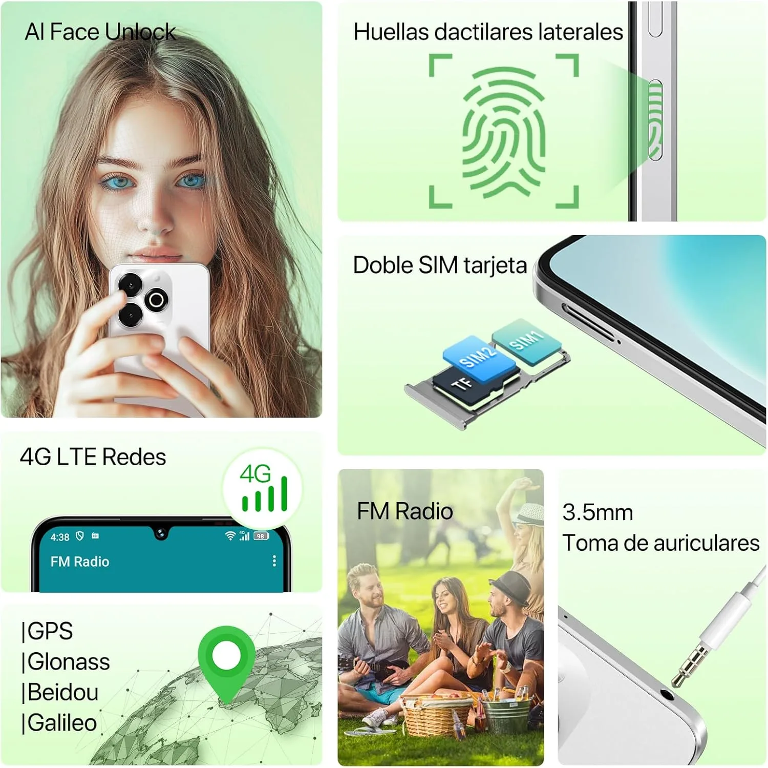 * Además, viene con Android 14 Go, lector de huella, Face ID y hasta el clásico jack 3,5mm que ya pocos traen.
