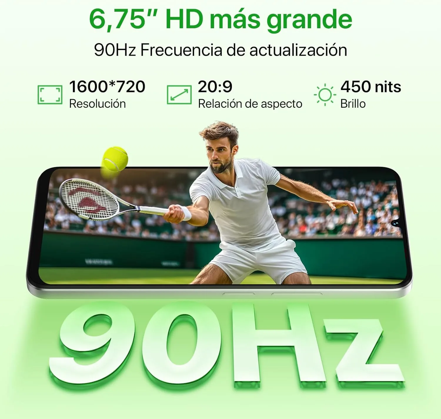 ✅ Pantalla grande y fluida (90Hz)