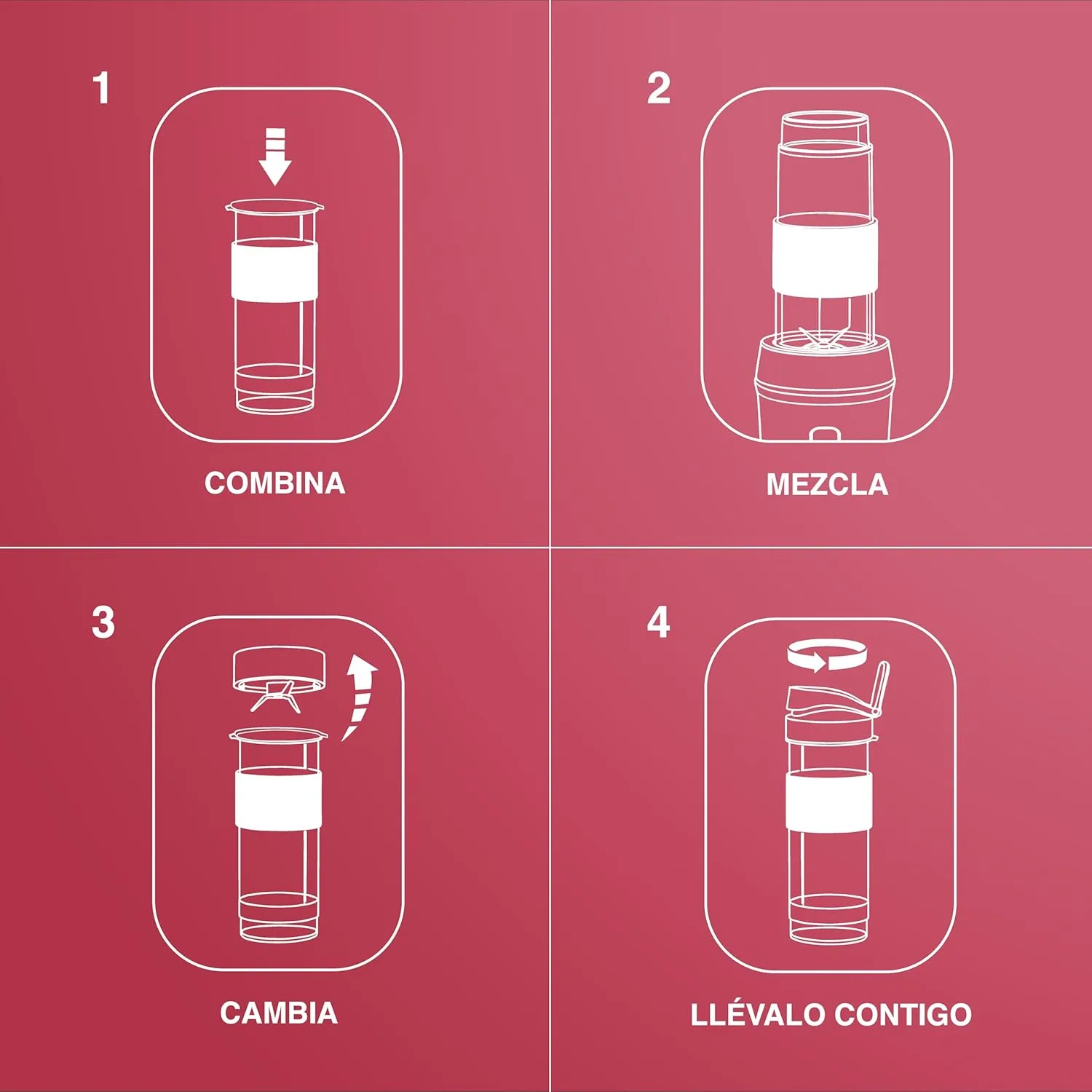 – Excelente sistema de elaboración, una vez batido, la sacas, le das la vuelta, cambias la tapa de la cuchilla por la tapa con boquilla para beber y listo – 3 segundos se tarda. La textura de las bebidas es excepcional.