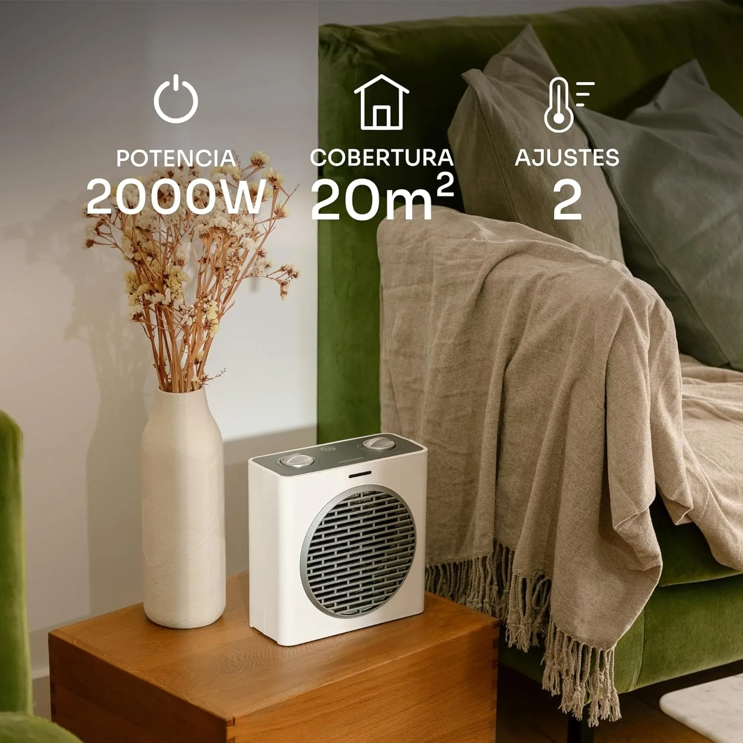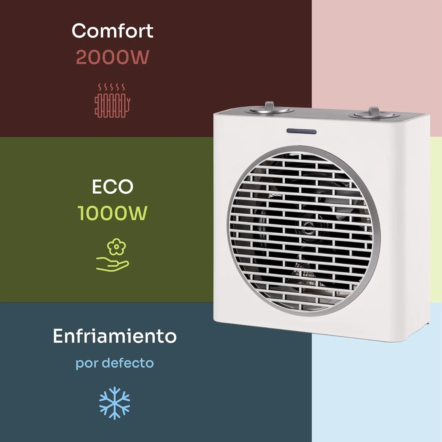En el lado positivo, la potencia de 2000W es más que suficiente para calentar rápidamente una habitación. Las tres funciones, especialmente el ventilador adicional, añaden versatilidad al dispositivo. Además, el diseño compacto y portátil es conveniente para moverlo de una habitación a otra según sea necesario.