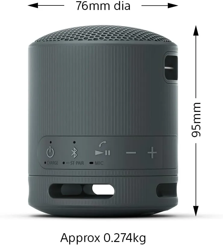 Compacto y portátil: el XB100 es ligero y compacto; incluye una correa adaptable que puedes usar para transportar o sujetar el altavoz