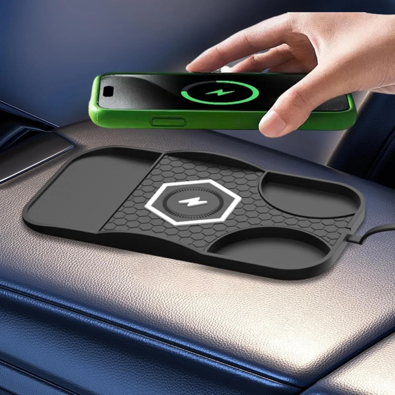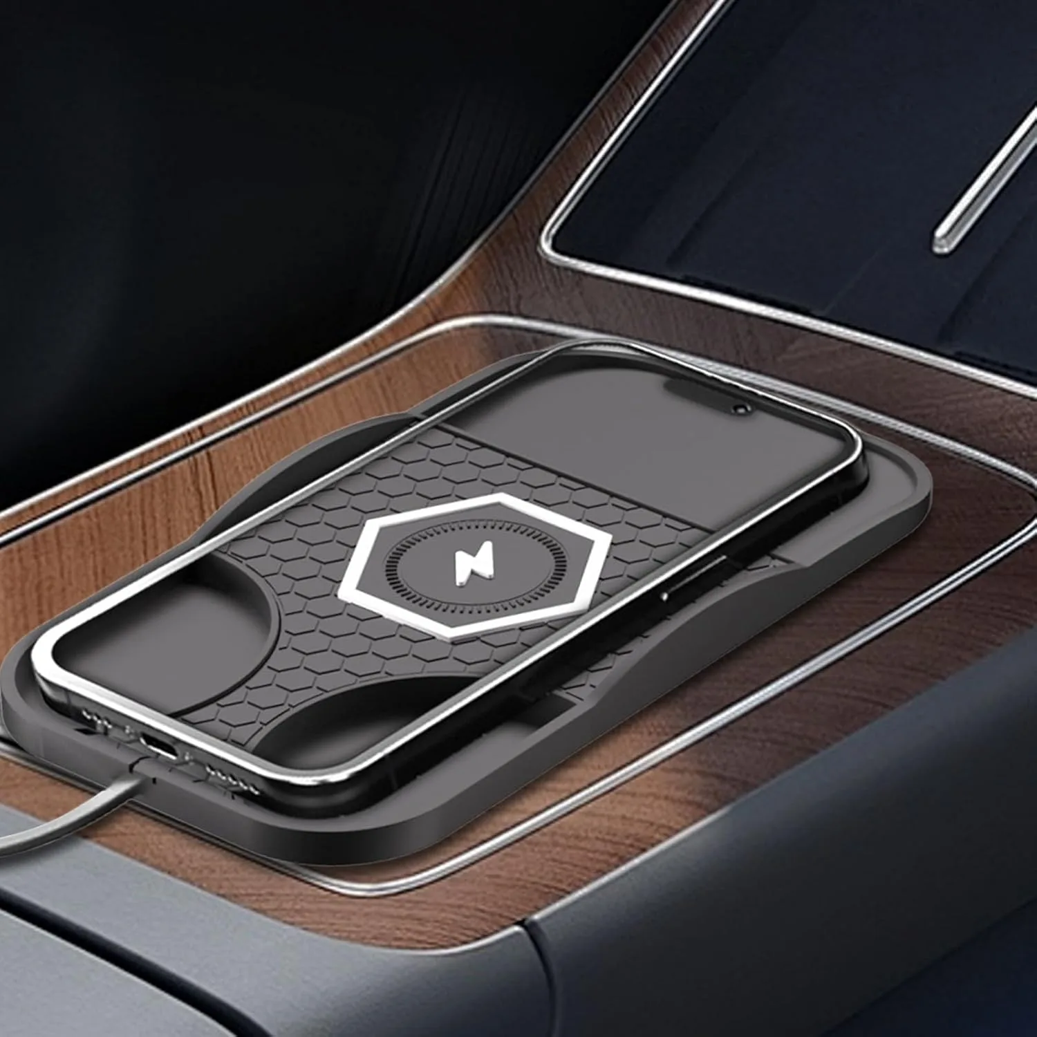 Sucritude Alfombrilla de Carga Inalámbrica para Coche – Step Design Base De Carga Plana Inalámbrica para Automóvil,Accesorio Antideslizante para Teléfono Móvil De Conductor Salpicadero De Automóvil