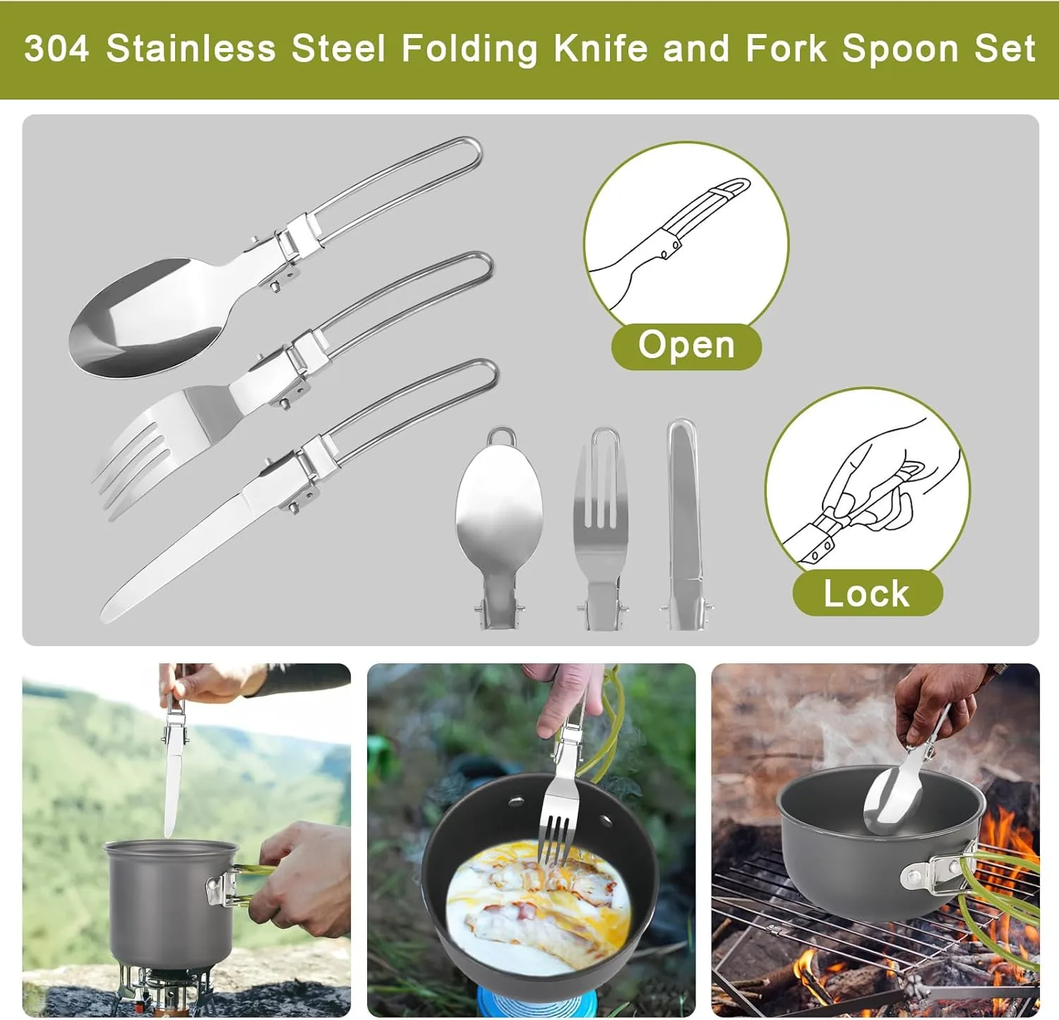 * Ampliamente utilizado: el juego de utensilios de cocina para acampar es ampliamente utilizado, perfecto para acampar, senderismo, picnic, barbacoa, mochilero y otras actividades al aire libre, los atletas al aire libre no deben perderse