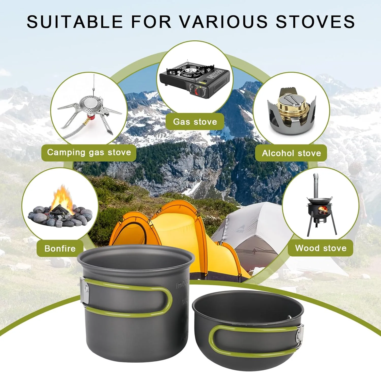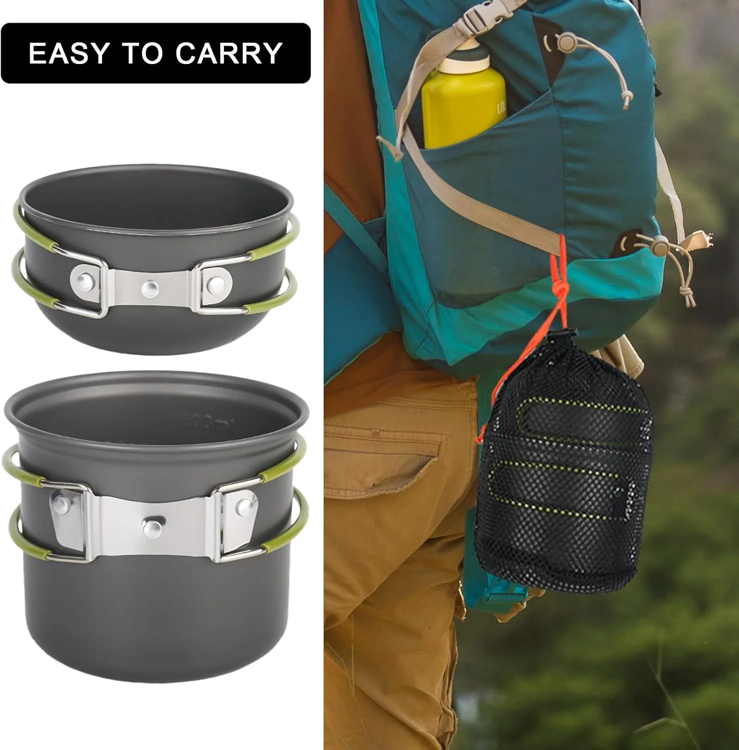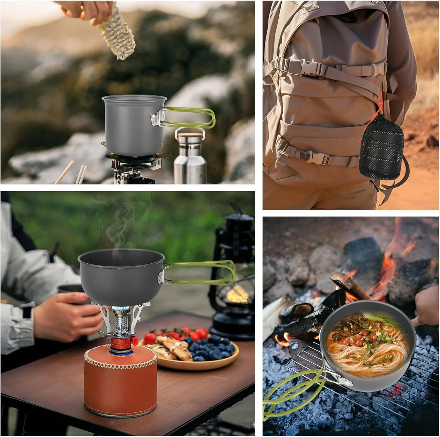 【Disfruta de la cocina】este excelente juego de cocina con olla de aluminio portátil es adecuado para aquellos a los que les gusta acampar al aire libre con familiares y amigos, es súper portátil y ofrece una gran comodidad para acampar, senderismo, mochileros, picnics y otras actividades al aire libre
