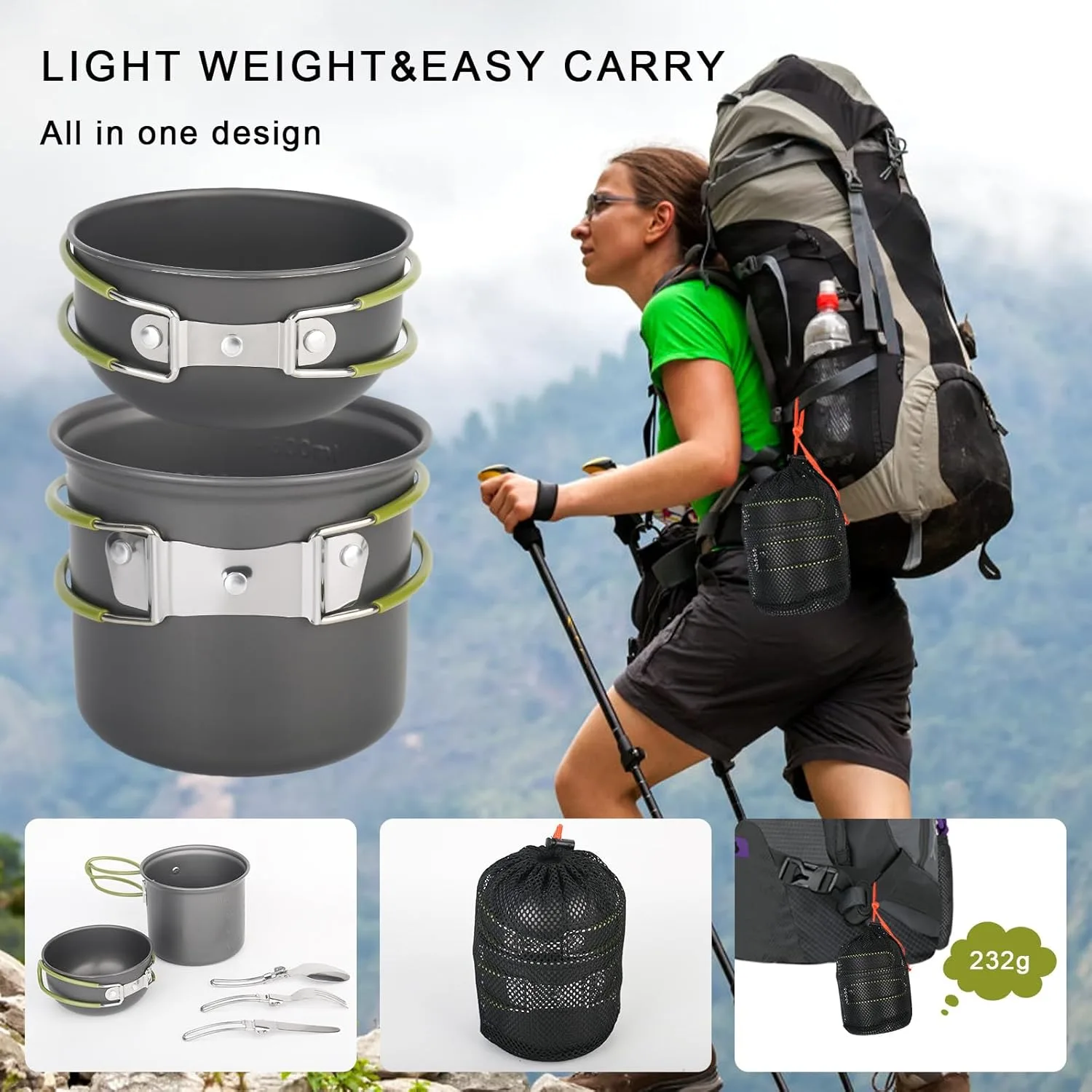 YYTECH Juego de Vajilla de Camping, Ollas de Aluminio, Juego de Cocina Plegable para Camping, Juego de Cocina de Camping con Cubiertos Y Olla, Vajilla para Exteriores Picnic, Senderismo, Camping