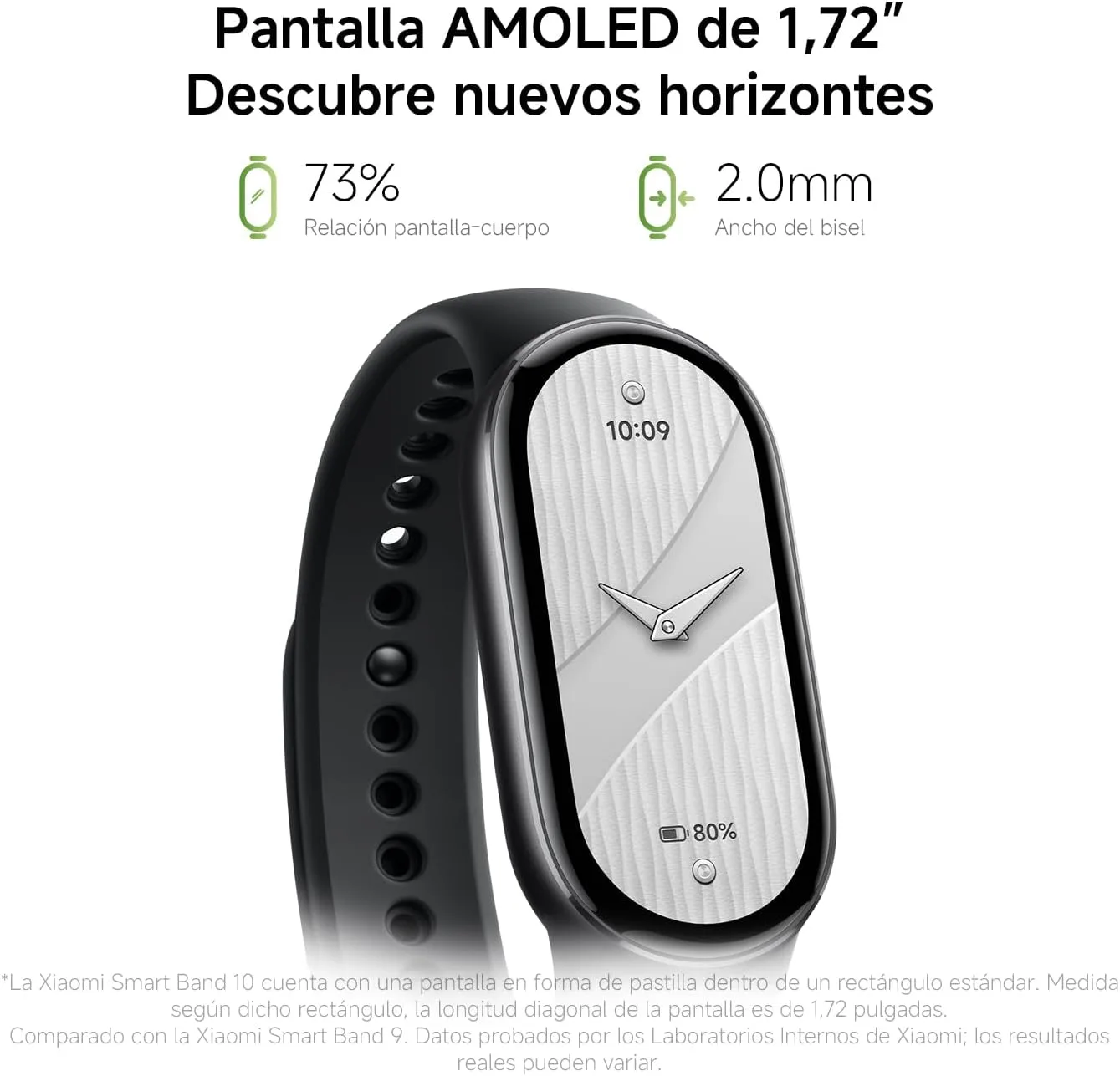 Xiaomi Smartband 10, Pantalla AMOLED de 1,72”, Carga rápida, 150+ Modos Deportivos, Monitorización de Salud y sueño, HyperOS 2.0, Impermeable 5ATM, Brújula