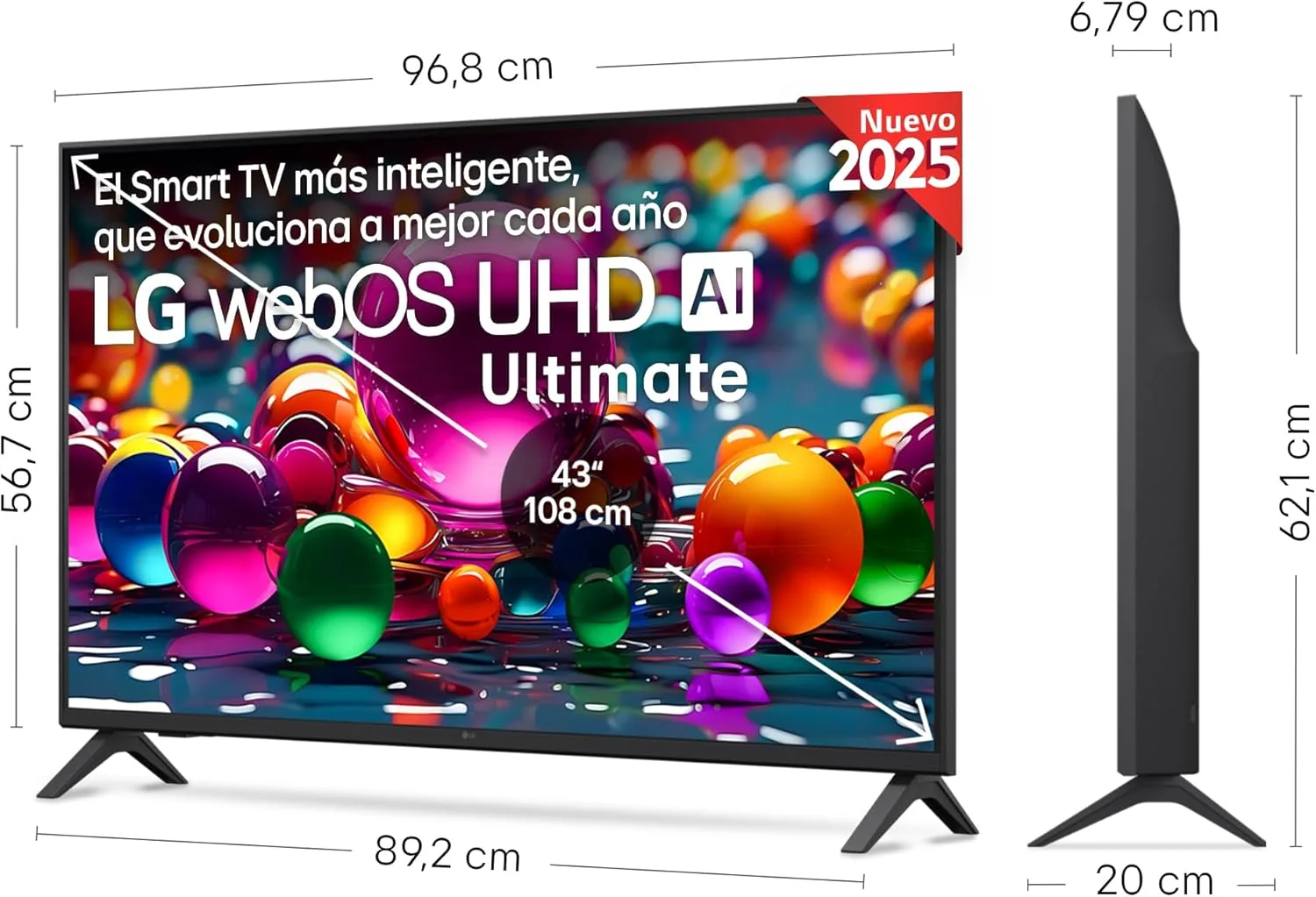 LG 43UA73006LA – TV 43″, UHD 4K, WebOS 25, Ultimate IA, HDR10 Pro, Super Upscaling, Dolby Digital Plus, Google Assistant, Negro