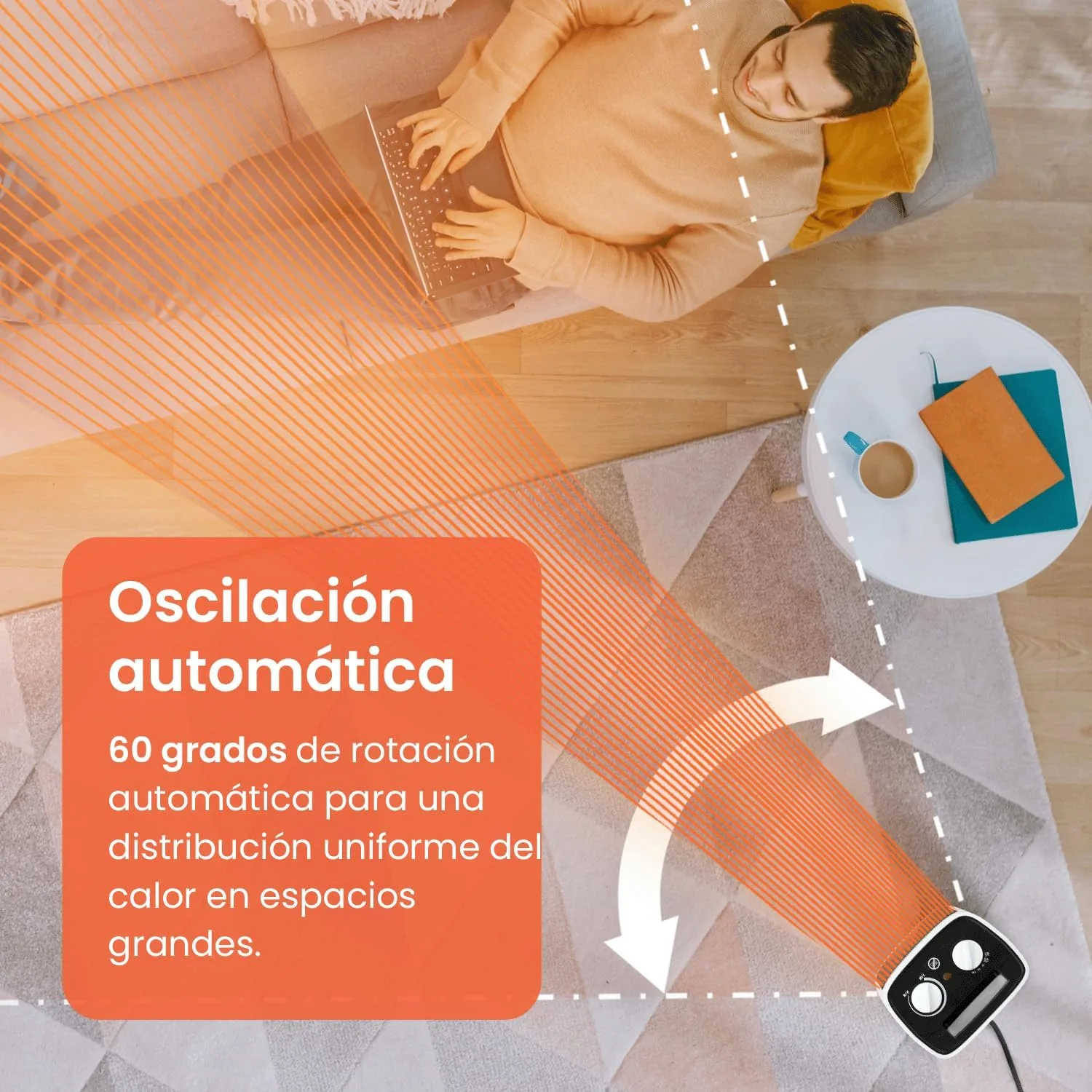 Der oszillierenden Low Modus ist mein Favoriten. Durch die 60 Grad Bewegung verteilt sich die Wärme gleichmäßig im ganzen Raum. Den oszillierenden High Modus bräuchte ich bisher nicht. Unser Bad mit ca. 12qm ist innerhalb von 5-10min kuschelig warm. Es gibt keine Aufwärmphase, die Wärme ist sofort da.