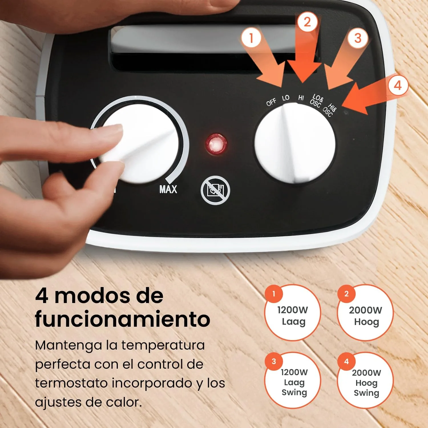 Der Heizlüfter wirkt äußerst stabil und wertig, was ich in dieser Preisklasse nicht erwartet habe. Er steht sehr stabil auf einem breitem Standfuss.