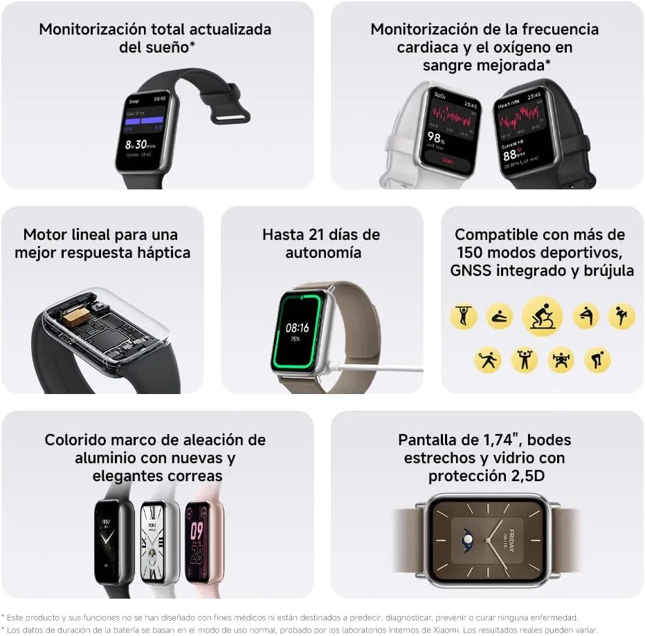 XIAOMI Smart Band 9 Pro – Pulsera de Actividad, Autonomía de hasta 21 días, Pantalla AMOLED de 1,74″, Monitorización del sueño, 150+ Modos Deportivos, 5ATM, GPS y brújula, App Mi Fitness, Plata
