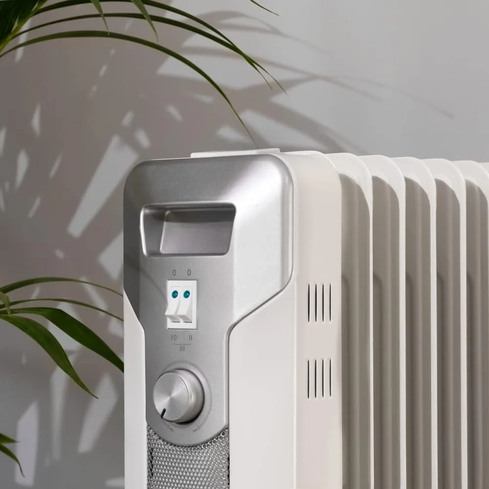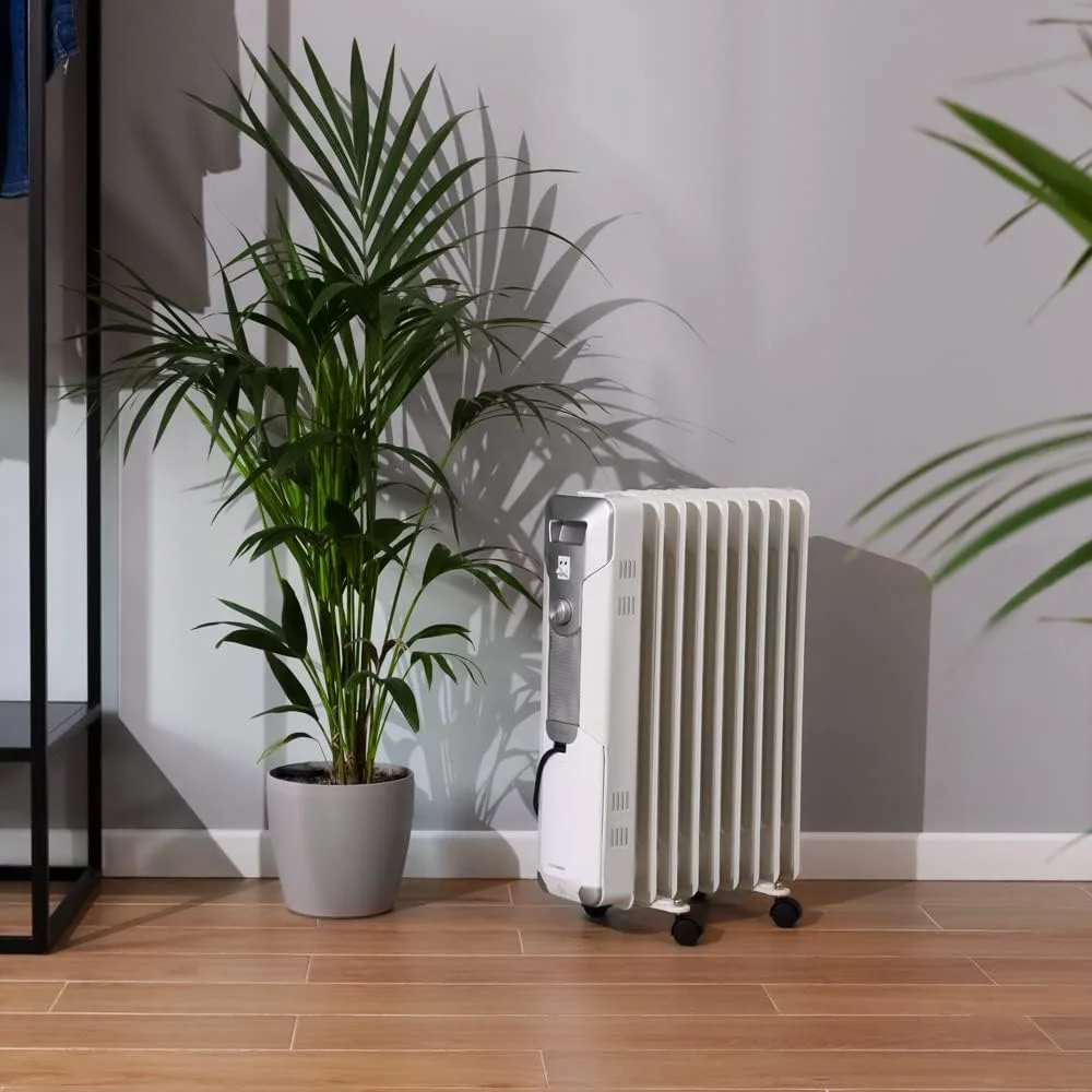 Radiador de aceite con 9 módulos de 150 x 580 mm ideal para habitaciones y pequeños salones. Su uso resulta muy sencillo ya que tan solo posee una rueda para ajustar el termostato y dos botones para seleccionar el modo de funcionamiento.