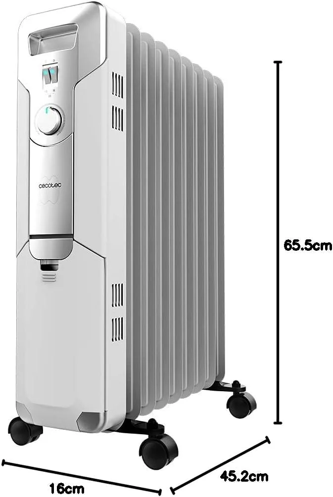 Cecotec Radiador Eléctrico de Aceite ReadyWarm 9000 Space. 9 Módulos, Bajo Consumo, 2000 W, 3 Niveles, Recogecables, Sistema de Seguridad, Ruedas, 20 m2