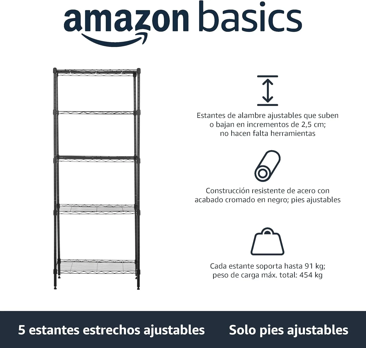 Es la clásica estantería de varilla o alambre. Su ventaja es que no acumulan polvo y humedad en las baldas, son resistentes y ligeras al mismo tiempo.
