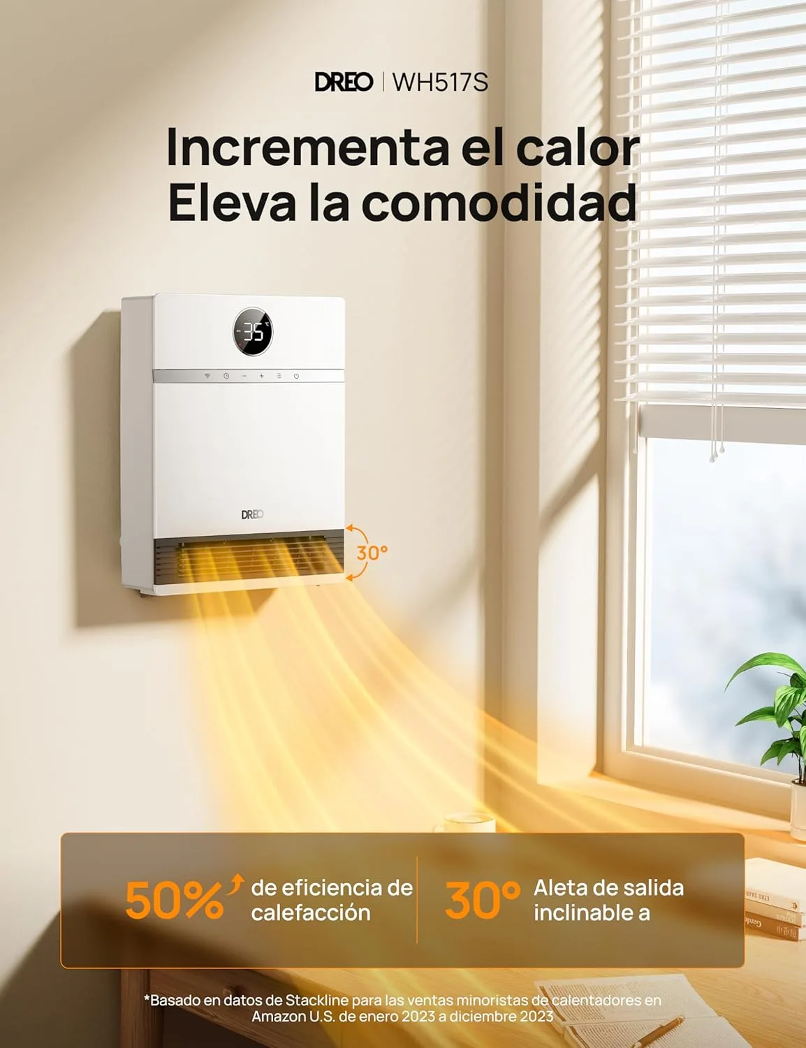 Il Dreo Smart Wall Heater è una scelta eccellente per chi cerca un riscaldatore a parete che unisca efficienza energetica, praticità e tecnologia. Con una potenza di 1500 W, un ventilatore che scarica l'aria a 30° e un termostato regolabile, questo dispositivo offre prestazioni superiori in termini di riscaldamento e comfort.