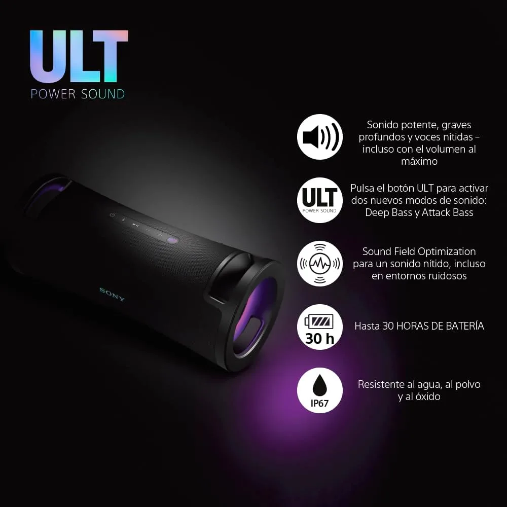 Sony ULT FIELD 7 Altavoz inalámbrico bluetooth portátil con ULT POWER SOUND y Deep Bass, altavoz X-Balanced, 30H de batería, IP67, resistente al agua, iluminación LED, micrófono, entrada para guitarra