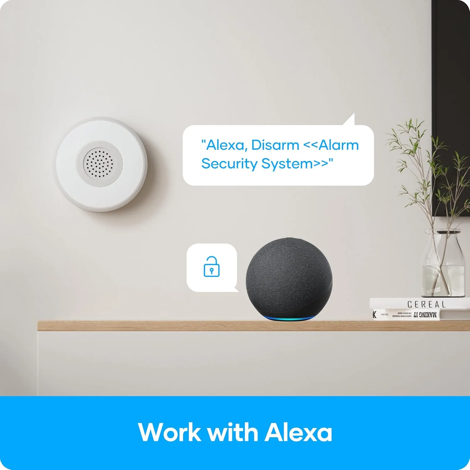 Le système est complet : il inclut des détecteurs de mouvement, des capteurs d’ouverture pour portes et fenêtres, ainsi qu’une sirène puissante qui dissuade immédiatement les intrus. Il est également compatible avec les assistants vocaux, ce qui ajoute un vrai confort d’utilisation.