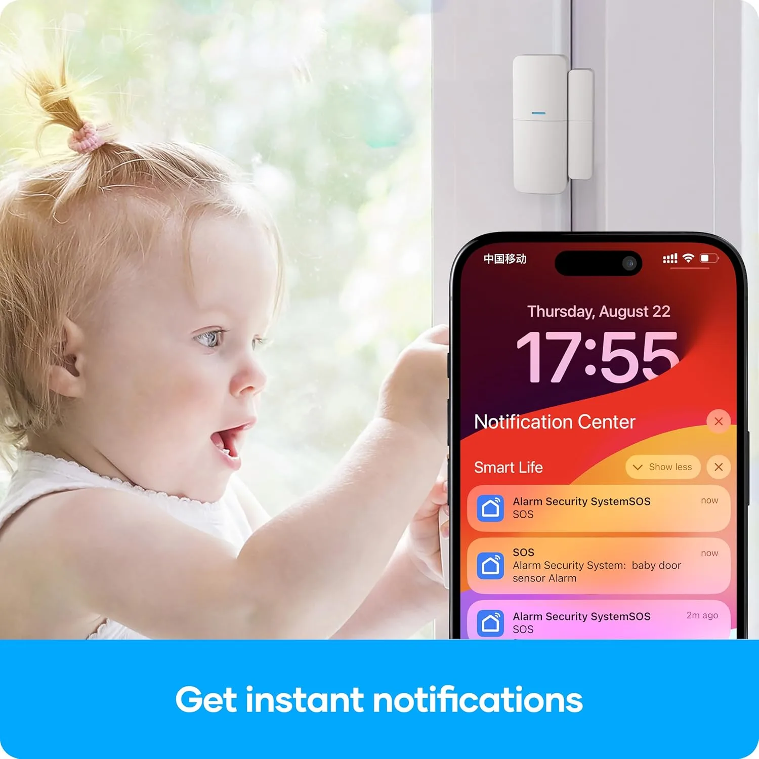 Por el precio me ha sorprendido que está funcionando sin dar fallo alguno. A pesar de que no me ha venido el manual en español la instalación es muy sencilla, enchufar la centralita, descargar la app smartlife y mediante esta conectarla a la wifi y listo.. el resto es solo ir añadiendo los sensores y demas accesorios y listo.Ademas puedes hacer que te llegue la notificación sin que suene la sirena de la centralita solo hay que bajar el volumen de la sirena en la app a 0 .Muy contenta la verdad.Y después de año y pico sigue perfectamente, lo que más me gusta es que no necesita suscripción, solo wifi, y que me avisa con notificación con sonido al móvil.La he recomendado a mis familiares ; por si ayuda tb la tengo instalada en ventanas correderas del modo que se ve en las fotos y en la puerta he cambiado la cinta adhesiva y engordado para adaptarla al marco.