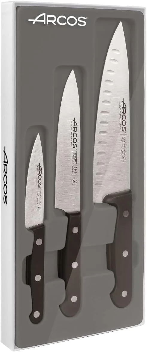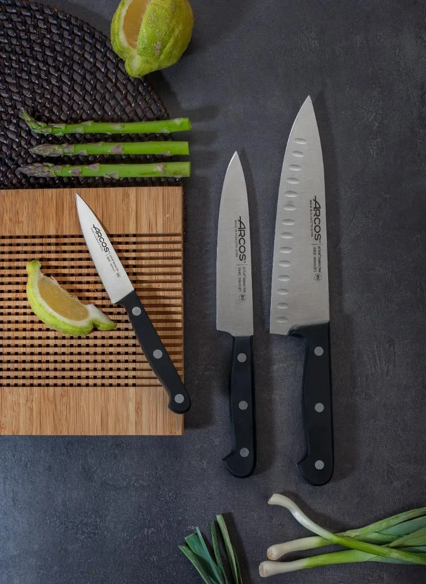 Este set de cuchillos Arcos destaca desde el primer uso por la nitidez y el equilibrio de cada pieza. Las hojas, fabricadas en acero inoxidable de alta calidad, mantienen el filo durante mucho tiempo y permiten cortes precisos en todo tipo de alimentos, ya sean carnes, verduras o pan. El mango ergonómico facilita un agarre cómodo y seguro, incluso tras varios minutos de uso continuo.Otro punto a favor es la facilidad con la que se limpian; no retienen olores y se mantienen impecables después de cada lavado. Es un conjunto versátil que cubre la mayoría de necesidades en la cocina, ideal tanto para cocineros aficionados como para quienes buscan renovar su menaje con productos duraderos y de confianza.La presentación del set es elegante, lo que lo convierte también en una excelente opción de regalo para cualquier amante de la cocina.