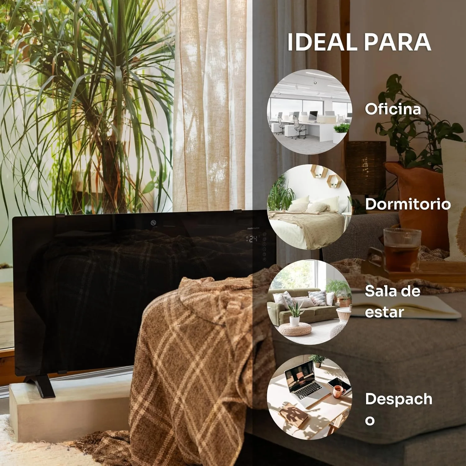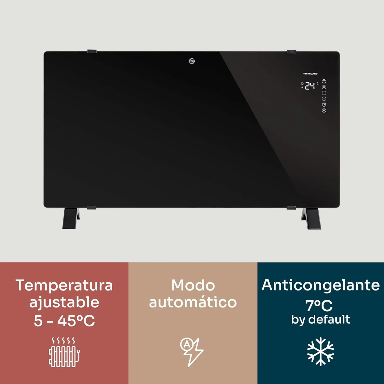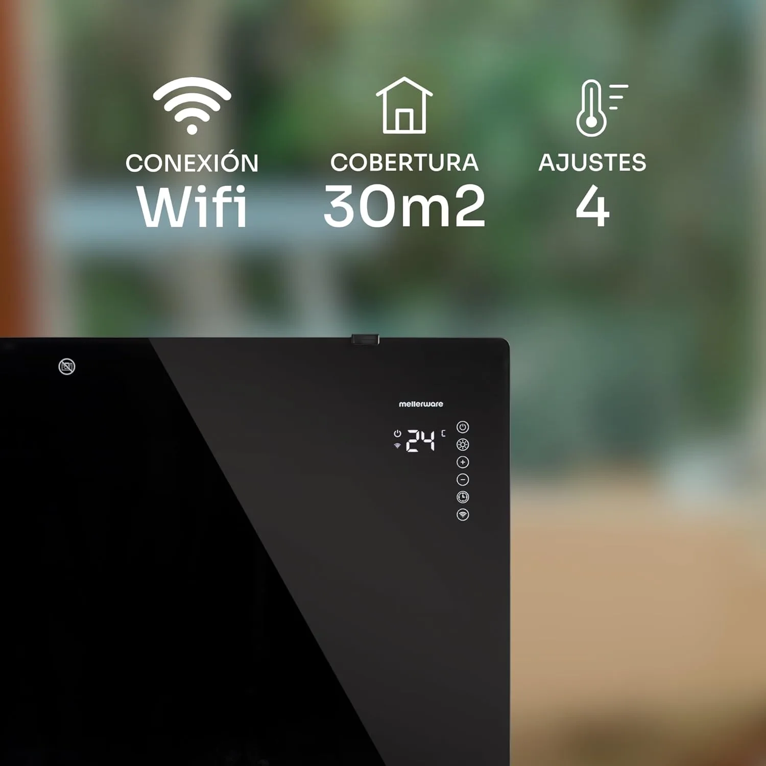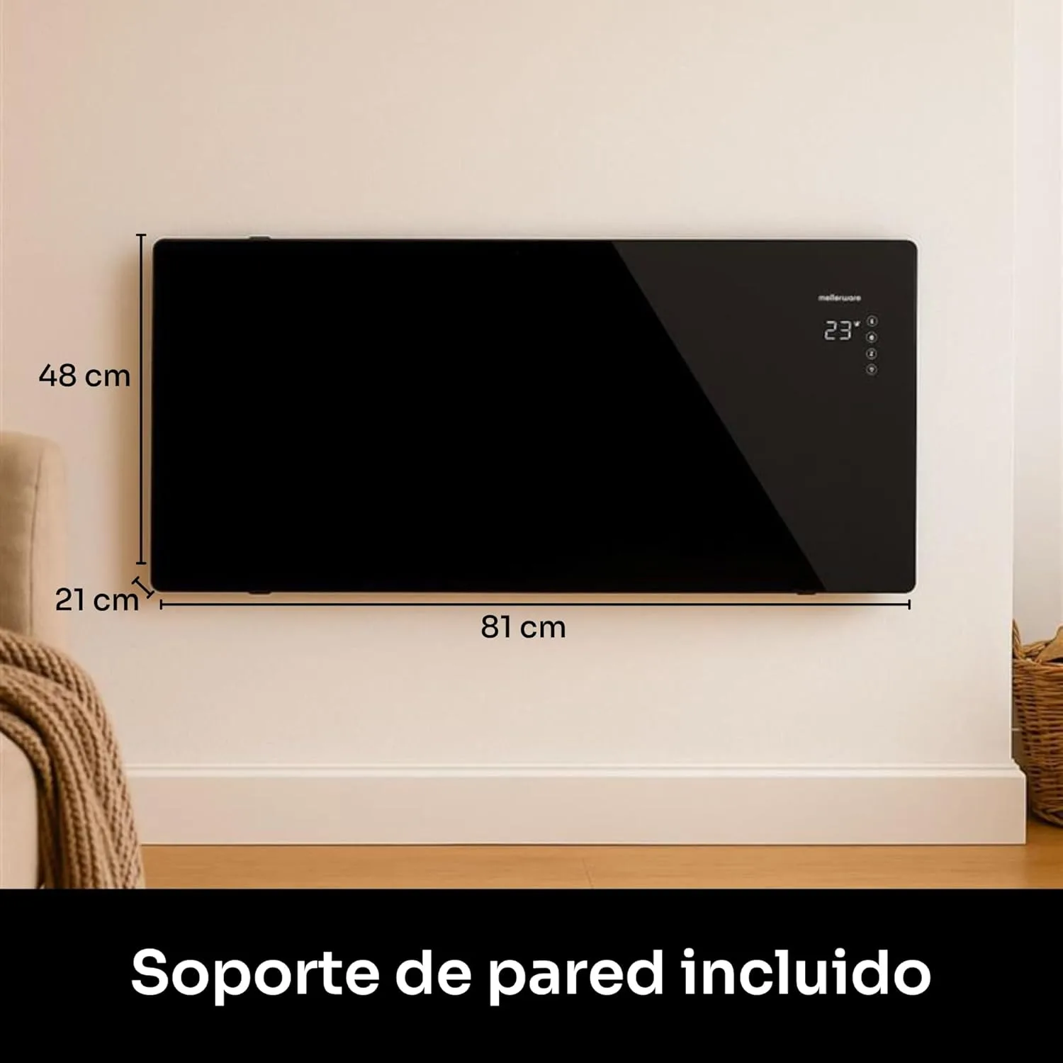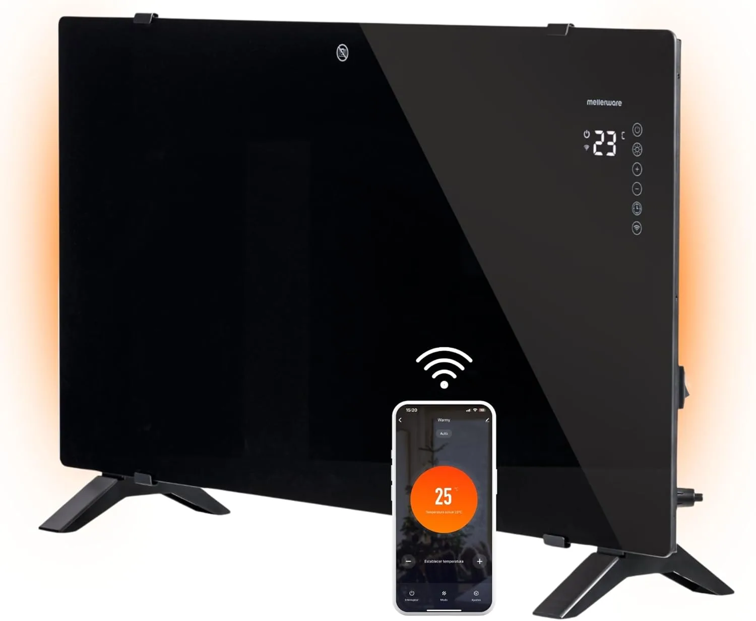 Mellerware – Radiador Eléctrico WIFI Bajo Consumo Cristal Warmy 2000W | 4 Modos Funcionamiento | 0-45ºC | Soporte Suelo/Pared | Programable Temporizador 24h | 81x48x21 Convector Autoapagado| APP