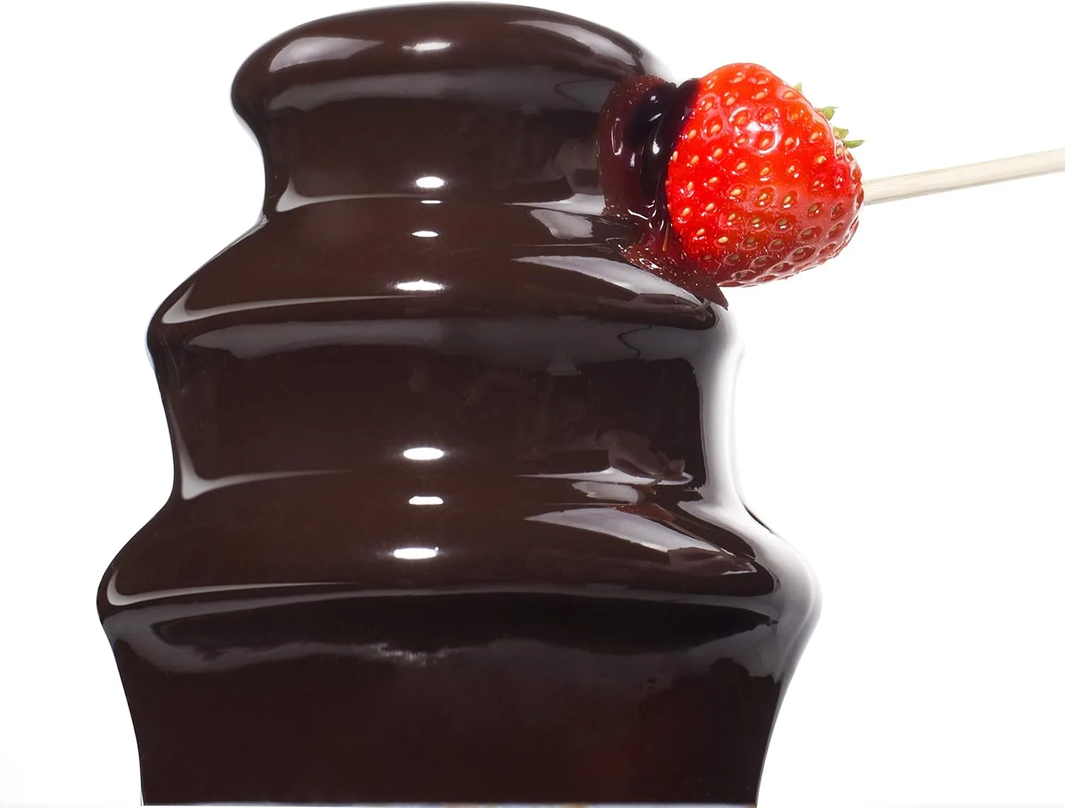 Uso sencillo para un placer delicioso: Derrite el chocolate (Contenido de manteca de cacao al menos 45%) por separado al baño maría o en el microondas con un poco de aceite vegetal, y viértelo en la fuente precalentada. Sigue la temperatura recomendada en el manual para una fluidez óptima.