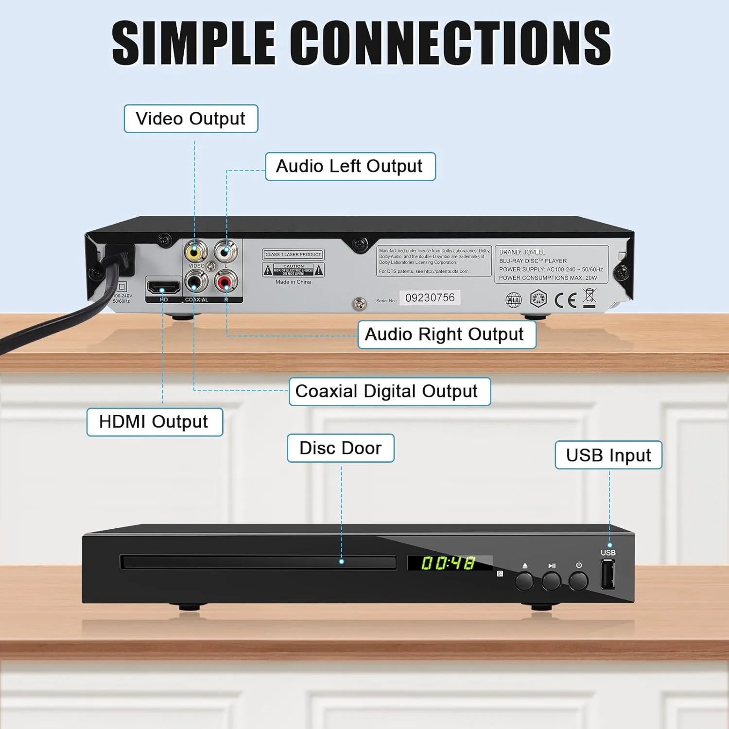 【Compatible con Múltiples Formatos】Nuestro reproductor de DVD Blu-ray funciona no sólo como un reproductor de DVD y CD gratuito para todas las regiones, sino también como un reproductor de archivos de disco USB. Puede reproducir una variedad de formatos de archivos, incluidos BD, BD-R, BD-RE, DVD-R, DVD-RW, DVD+R, DVD+RW, DVD-Video, VCD, CD, CD-R, CD-RW, brindándole el máximo placer de ver y escuchar. [Tenga en cuenta que los discos Blu-ray solo se pueden admitir mediante una conexión HDMI, no una conexión AV.]