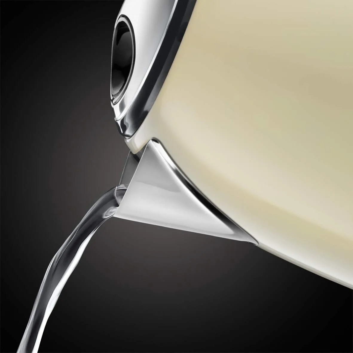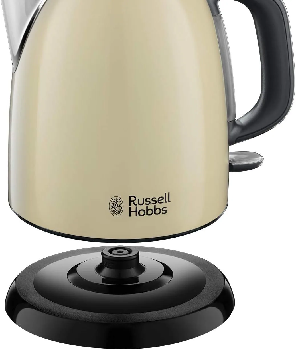 Russell Hobbs Hervidor de Agua Eléctrico Colours Plus – 1 litro, Hervidor Pequeño, 2400 W, Filtro Extraíble, Zona de Ebullición Rápida, Base de 360°, Indicador Nivel de Agua, Inox., Crema – 24994-70