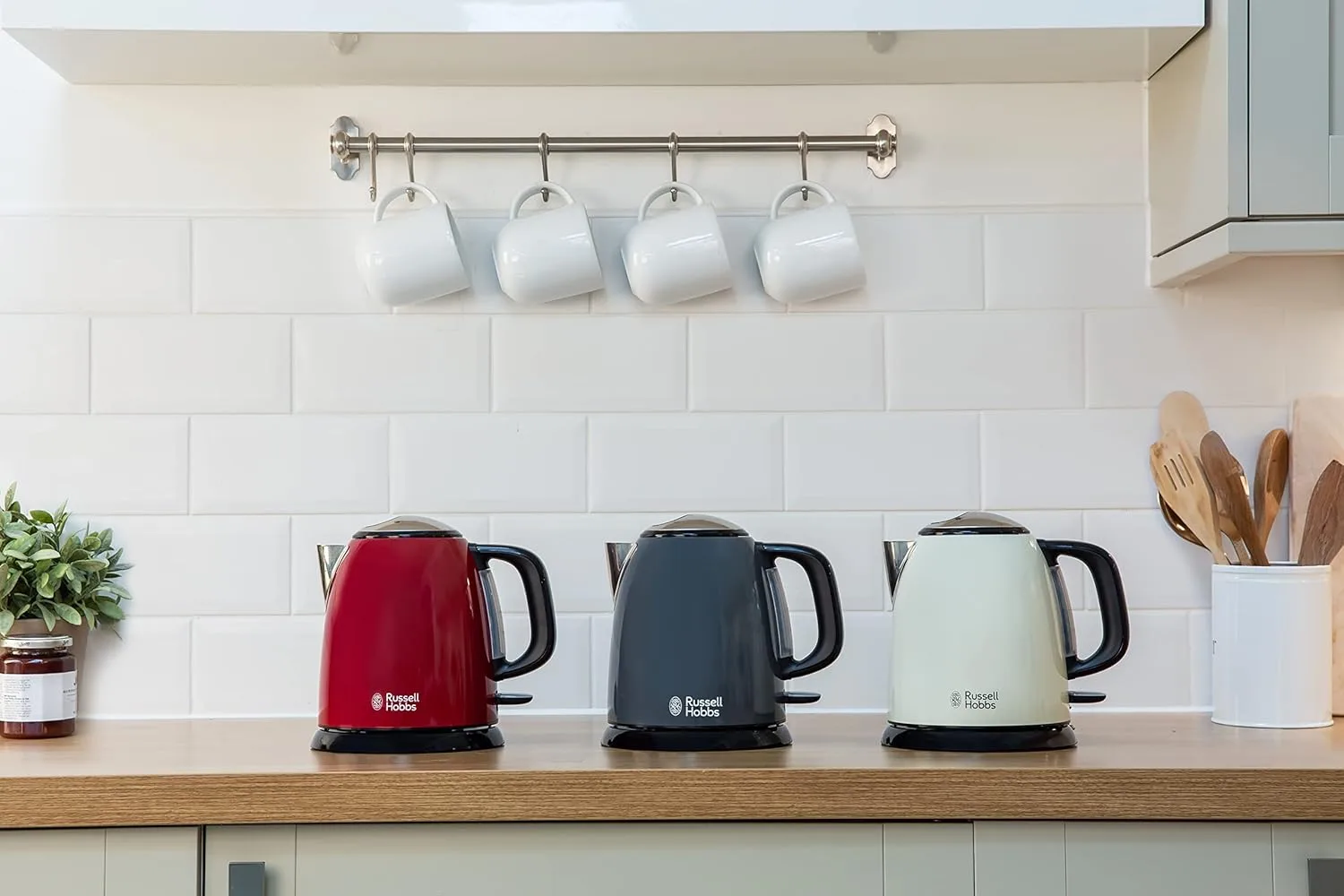 Resumen del producto: Russell Hobbs Hervidor de Agua Eléctrico Colours Plus – 1 litro, Hervidor Pequeño, 2400 W, Filtro Extraíble, Zona de Ebullición Rápida, Base de 360°, Indicador Nivel de Agua, Inox., Crema – 24994-70