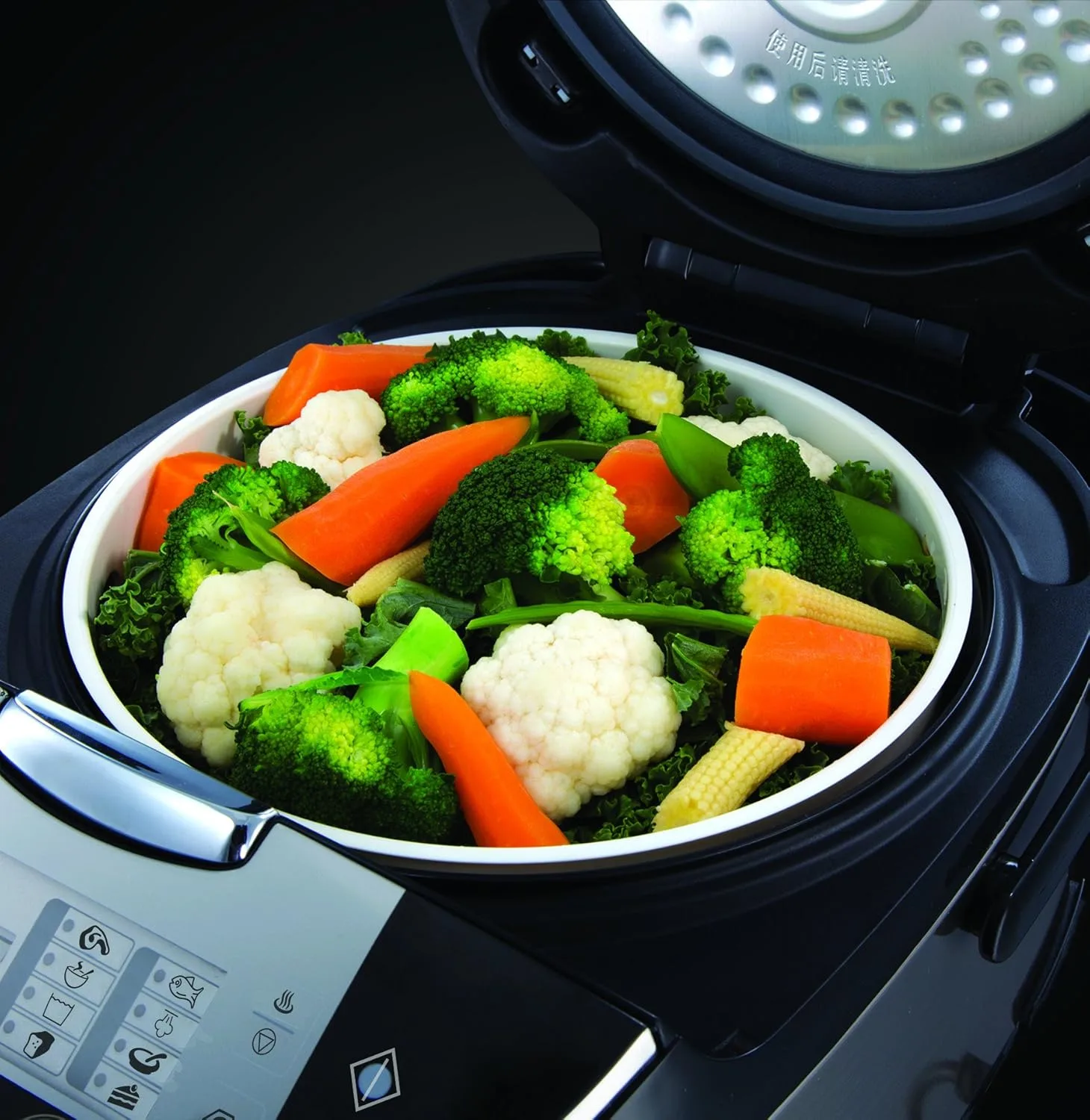 11 programas disponibles (arroz, cocción a fuego lento, estofado, carne, pescado, sopa, al vapor, yogur, gachas y pan/ pasteles) con función de mantenimiento del calor
