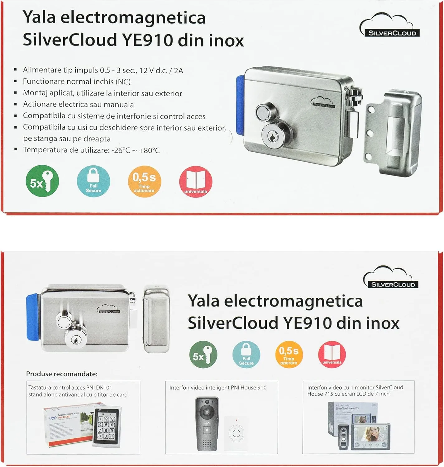 Resumen del producto: SilverCloud PNI-SCYE910 Candado eléctrico, 12 V, Níquel Satinado