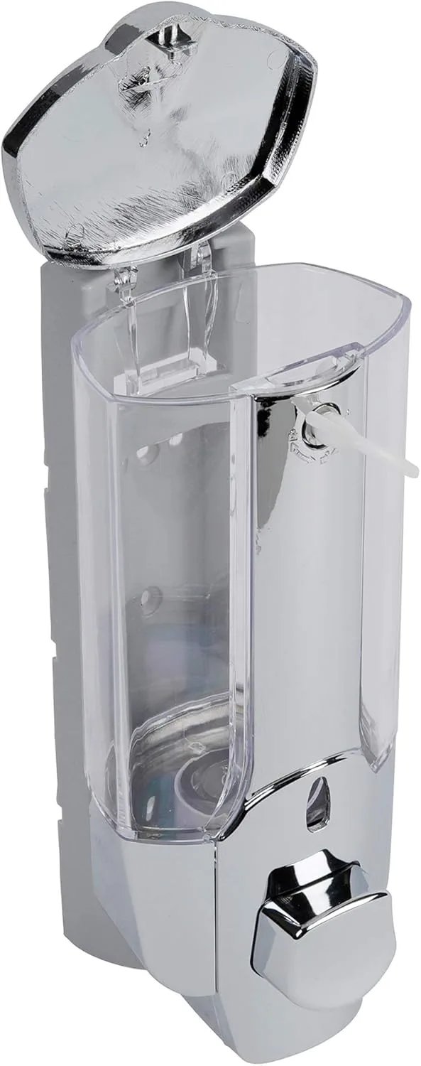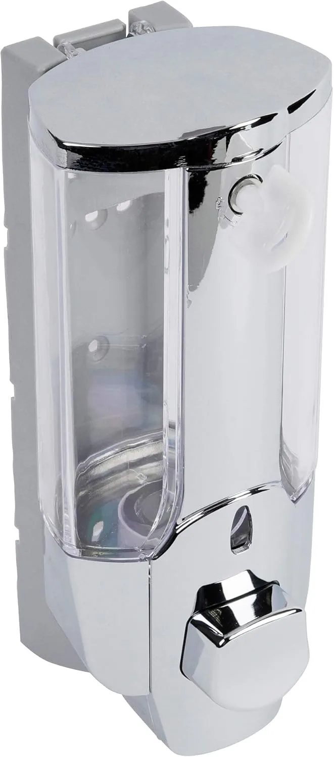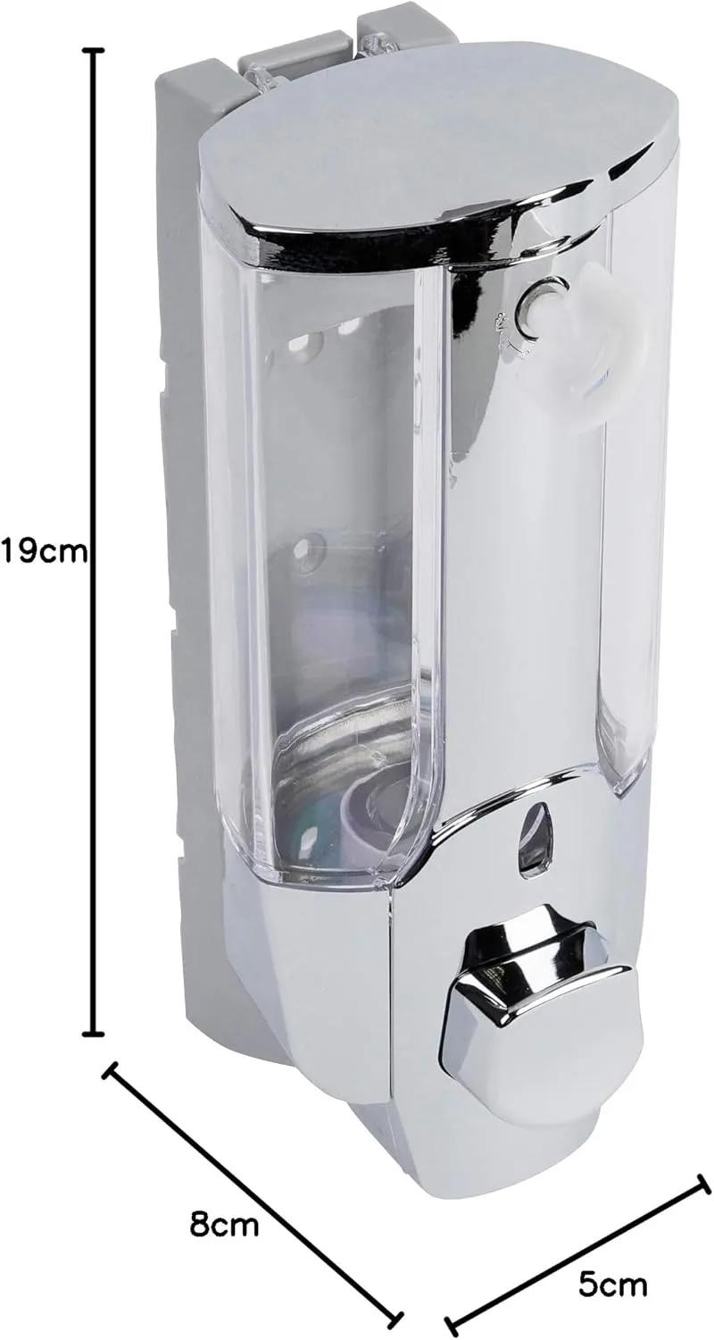 axentia Dispensador de Jabón Líquido para Pared Aprox. 380 ml de Plástico Cromado, Dosificador de Jabón/Champú/Loción para Baño y Cocina, Aprox. 7,5 x 19 x 8,5 cm, Plateado, 133171