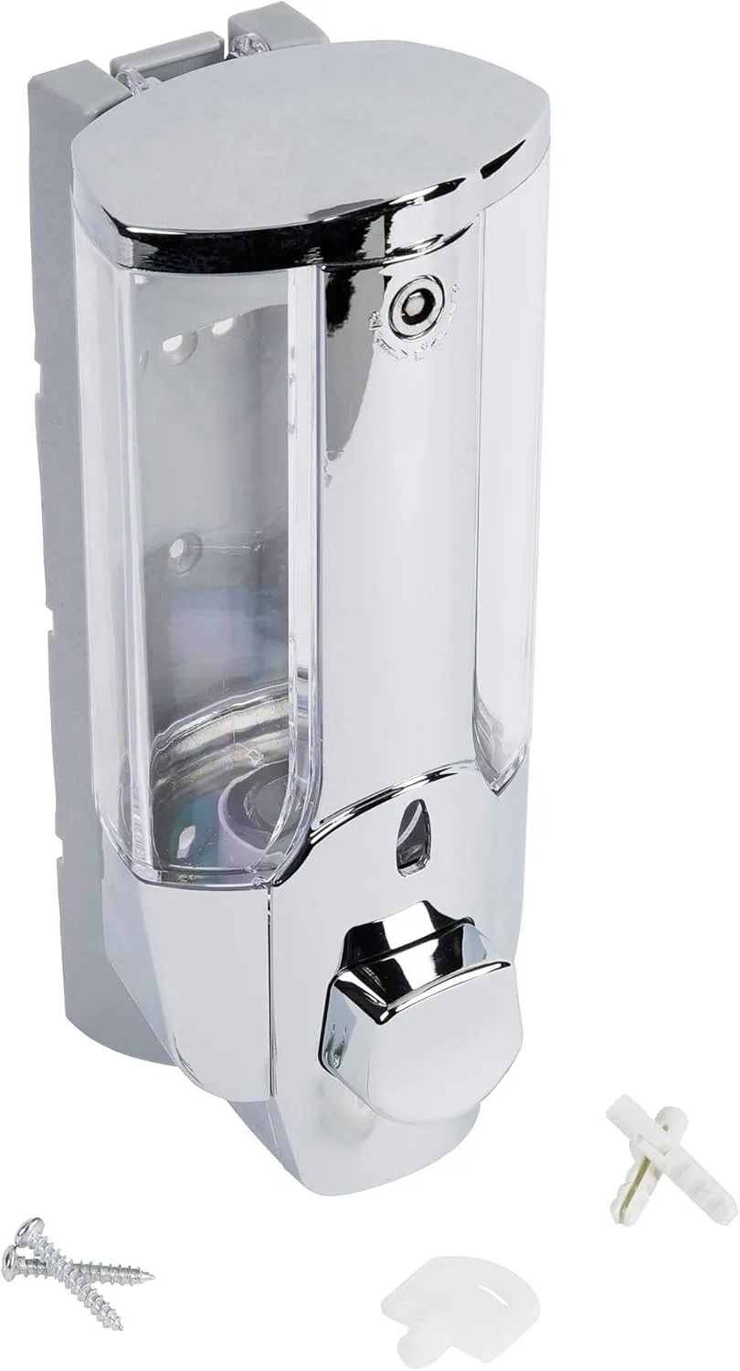 Resumen del producto: axentia Dispensador de Jabón Líquido para Pared Aprox. 380 ml de Plástico Cromado, Dosificador de Jabón/Champú/Loción para Baño y Cocina, Aprox. 7,5 x 19 x 8,5 cm, Plateado, 133171