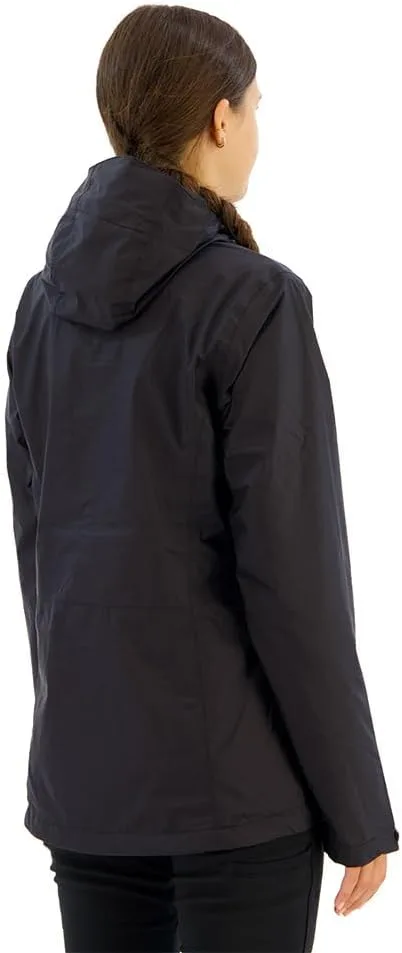 Chaqueta impermeable para mujer con capucha, ideal para todas las estaciones, Adecuada para cualquier momento del día y para actividades al aire libre – Extremadamente impermeable y transpirable, gracias a la tecnología Omni-Tech con costuras selladas – Cremallera completa, dos bolsillos frontales, Se puede guardar en su propio bolsillo frontal para una mayor comodidad de almacenamiento – Ideal para usar durante todo el año: tejido repelente al agua, capucha para tormentas fija y ajustable, puños elásticos