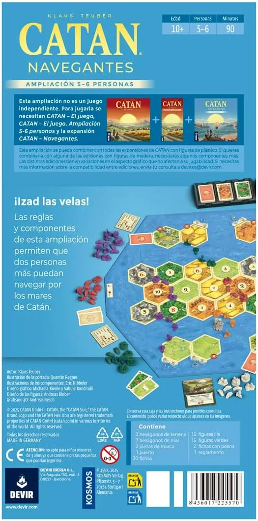 Devir – Catan: Expansión Navegantes para 5-6 pers, Juego de Mesa Familiar y con Amigos – Para +10 años (BGNAV56)