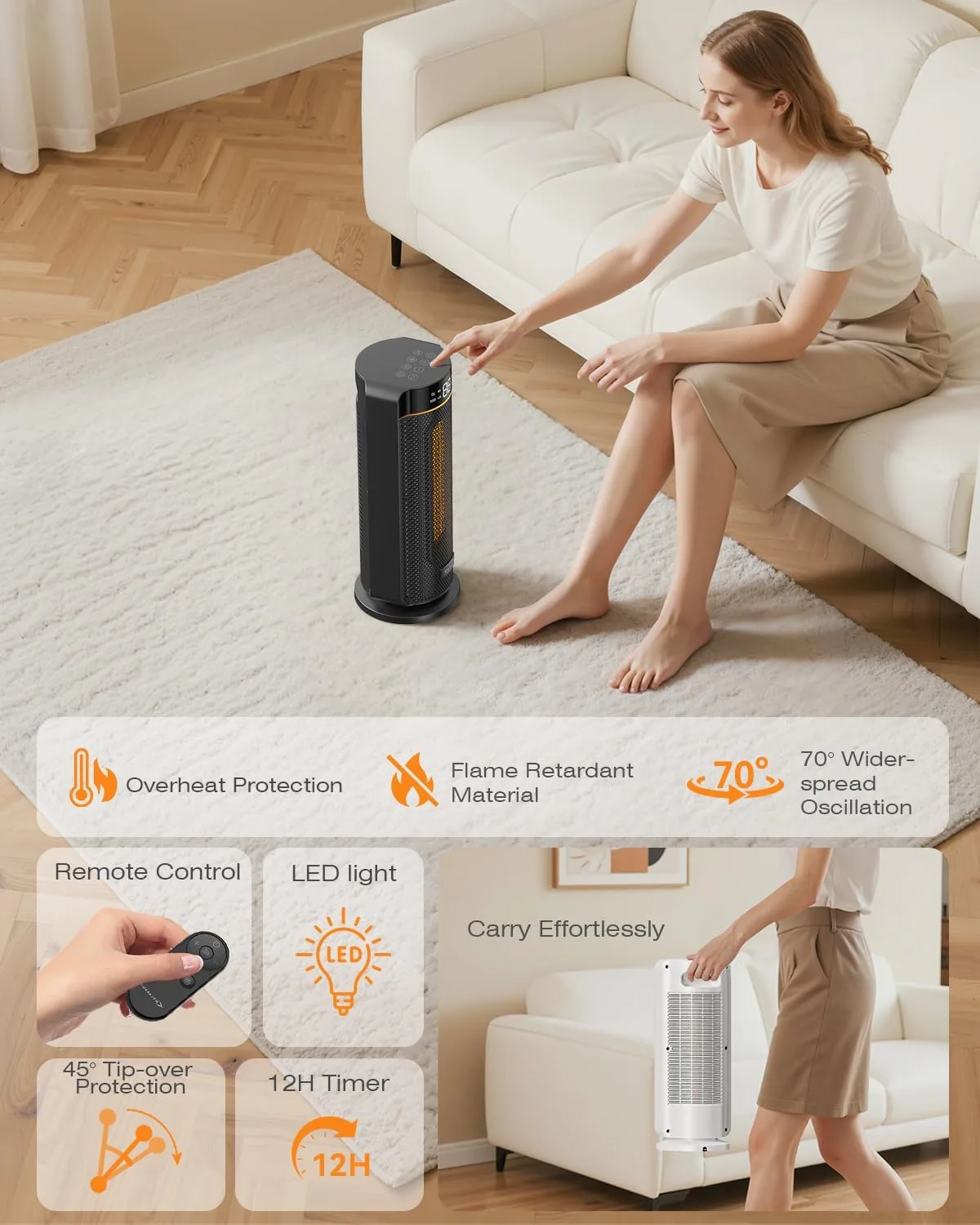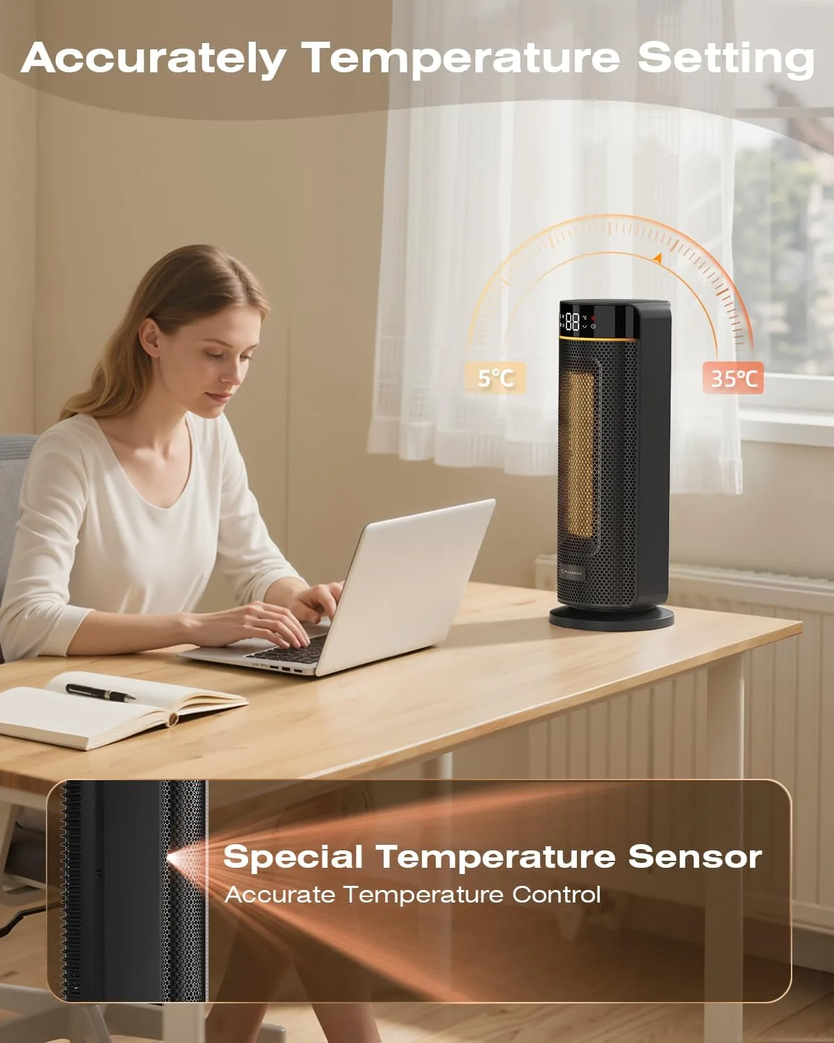 Ich habe diesen Heizlüfter für mein Bad gekauft – und er ist ein Helfer! Mit 1900 Watt heizt er schnell auf, der PTC-Keramik-Heizstab ist energiesparend. Die 70° Oszillation verteilt die Wärme gleichmäßig. Die Fernbedienung ist praktisch – ich kann ihn von Bett aus steuern. Der 12-Stunden-Timer ist ideal für Nachtschichten. Und: er ist nur 32 dB laut – fast geräuschlos! Für Bad, Schlafzimmer oder Büro – einfach genial!