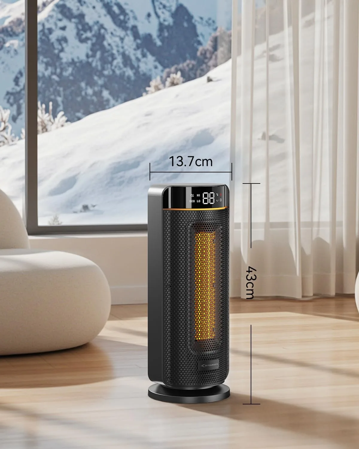 De MYCARBON 【Calentador Instantáneo】 La estufa eléctrica con potencia de 1000 W/1900 W combinado con la tecnología PTC para calentar rápidamente entre 5 °C – 35 °C (elegidos) en 2 s. El motor proporciona un calor potente de hasta 3 m/s, junto con la oscilación 70° para distribuir el calor uniformemente por toda la habitación de 25 m². Ideal para dormitorios, oficinas, estudios o salas de estar 【Calentador Digital】MYCARBON 2025 calefactor eléctrico cuenta con una pantalla LED que permite ver fácilmente todos los ajustes. La pantalla con apagado automático evita distracciones durante el uso nocturno. Todas las funciones se controlan por la pantalla táctil del calentador o el control remoto incluido, lo que facilita su uso sin necesidad de levantarse del sofá o la cama 【Silencioso】 Este radiador electrico utiliza la tecnología de ventilador de flujo cruzado MYCARBON para evitar la turbulencia del aire caliente, proporcionando un calentamiento más uniforme, suave, cómodo y silencioso. Con un funcionamiento por debajo de los 32 dB, es excepcionalmente silencioso, lo que garantiza la tranquilidad incluso para las personas sensibles al ruido 【4 Modos & TIMER 12 h & Apagado Automático】Este calefactor portátil cuenta con 4 modos, especialmente el modo ECO para una calefacción más económica sin sacrificar la comodidad. Es ideal para quienes buscan una solución compacta y eficiente para el invierno. TIMER 12 horas le permite programar la calefacción según sus necesidades. Además, tras 24 horas de uso continuo, el calentador se apaga automáticamente para garantizar su durabilidad y seguridad 【Calentador Premium】Este calefactor bajo consumo está fabricado con materiales de alta calidad y es inodoro. Sus múltiples funciones de seguridad, como protección contra vuelcos y sobrecalentamiento, ofrecen mayor protección. El tamaño 40 cm (16 Inch) con asa oculta facilita su transporte, y la iluminación ambiental LED añade un toque de calidez a su hogar