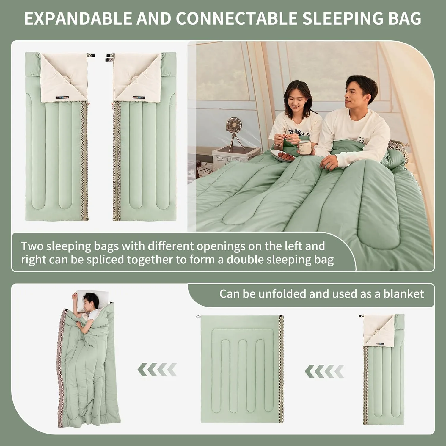 【Empalmable】El saco de dormir empalmado se divide en dos cremalleras a la izquierda y a la derecha. Puedes combinar dos sacos de dormir con diferentes aberturas a izquierda y derecha para crear un saco de dormir doble. Perfecto para que las familias disfruten juntas de una noche cálida.