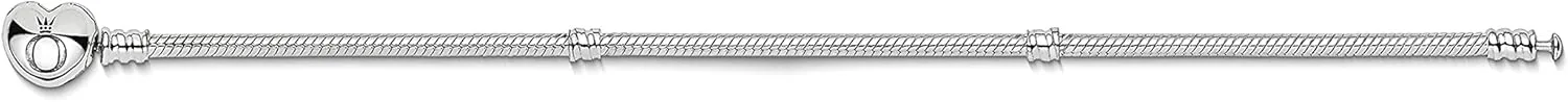 Haz que tu corazón se mueva con esta versión romántica de la pulsera de abalorios más vendida de Pandora. Acabado a mano con un cierre en forma de corazón, esta pulsera de cadena de serpiente de plata de ley se ve impresionante por sí sola, pero aún mejor adornada con tus dijes y clips favoritos de Pandora. Combínala con pulseras de cadena Pandora en contraste para un aspecto elegante y multicapa.
