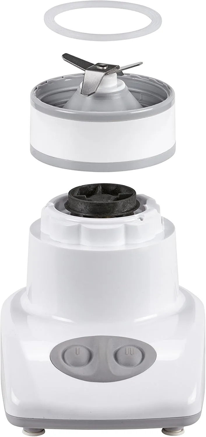 Un piccolo frullatore con bicchiere in vetro, lame svitabili per pulire bene, due velocità ma alla bassa già frulla benissimo la frutta a pezzi. Fa giusto due bicchieri alla volta, a me è perfetto. Non serve spendere di più.