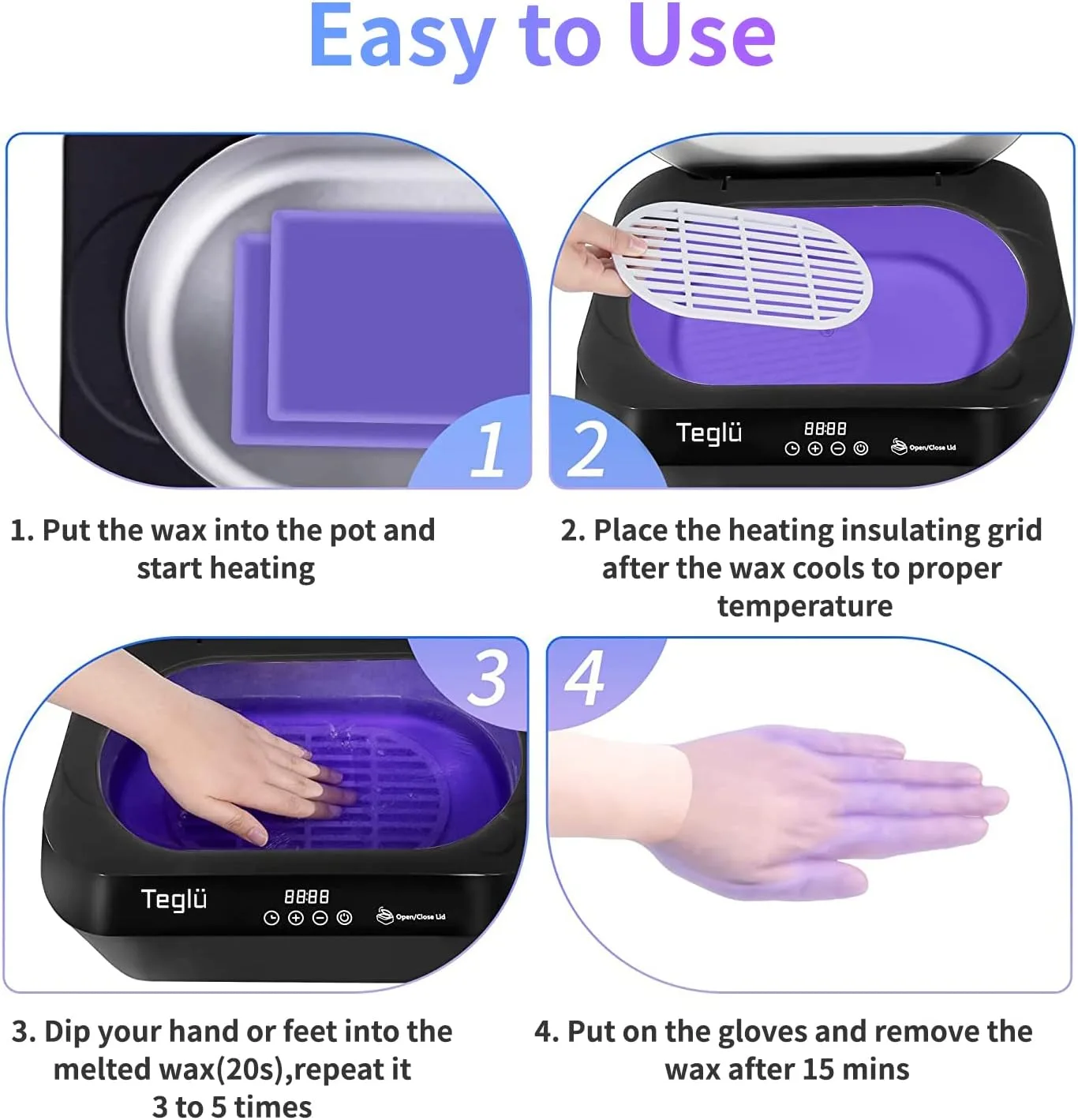 Pantalla Digital de Temperatura/hora & Tapa Automática: Nuestro fabricante de parafina puede establecer la temperatura de 30 a 70°C/86 a 158°F. Ya no necesita un termómetro para probar la temperatura, lo hace más conveniente de usar