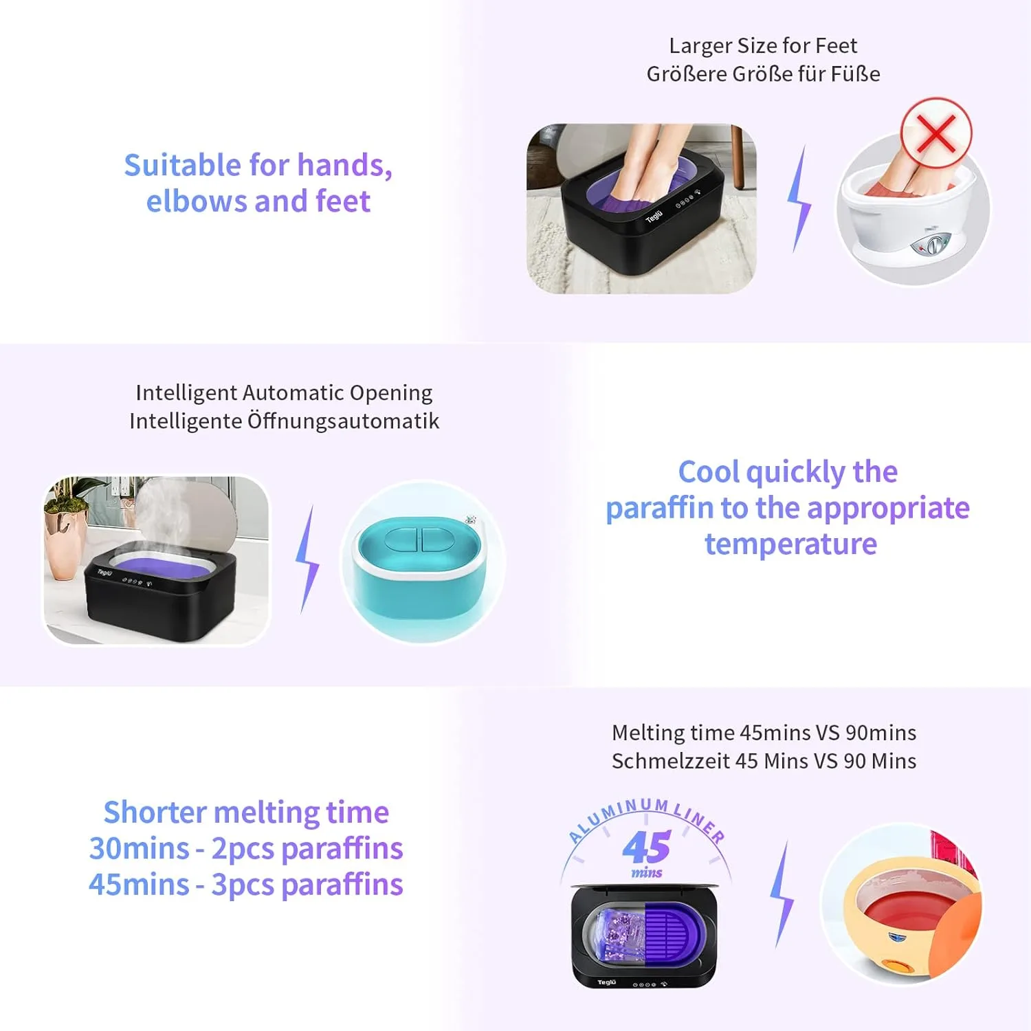 Temperatura Constante & Protección contra Sobrecalentamiento: Cuando la temperatura supera los 70°C/158°F, nuestro maquina parafina manos y pies dejará de calentarse y mantendrá una temperatura constante para proteger la seguridad