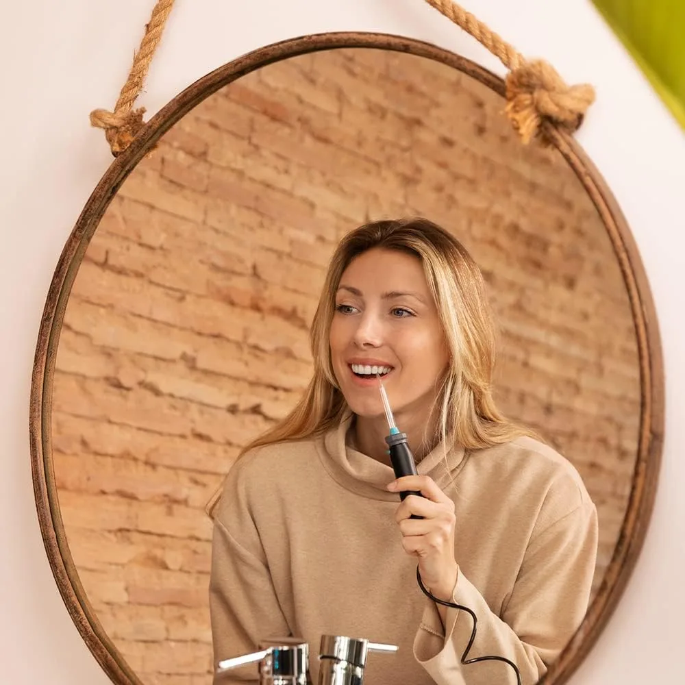 Irrigador bucal, ideal para limpiar, sanear y cuidar en profundidad la salud bucal. Adaptado a todo tipo de necesidades gracias a sus 7 boquillas, perfectas para unos resultados personalizados. Tecnología de modulación de pulsos hasta 1250-1700 pulsos por minuto para una limpieza en profundidad. Dispone de una gran capacidad de depósito de 1000 ml y hasta 10 ajustes de presión, asegurando una profunda limpieza sin dañar el esmalte natural de cada dentadura. Su tamaño pequeño y diseño ergonómico permite que sea fácil y cómodo de usar y transportar. Su luz UV integrada permite esterilizar las boquillas, y son lavables bajo el grifo, asegurando su mantenimiento y conservación.