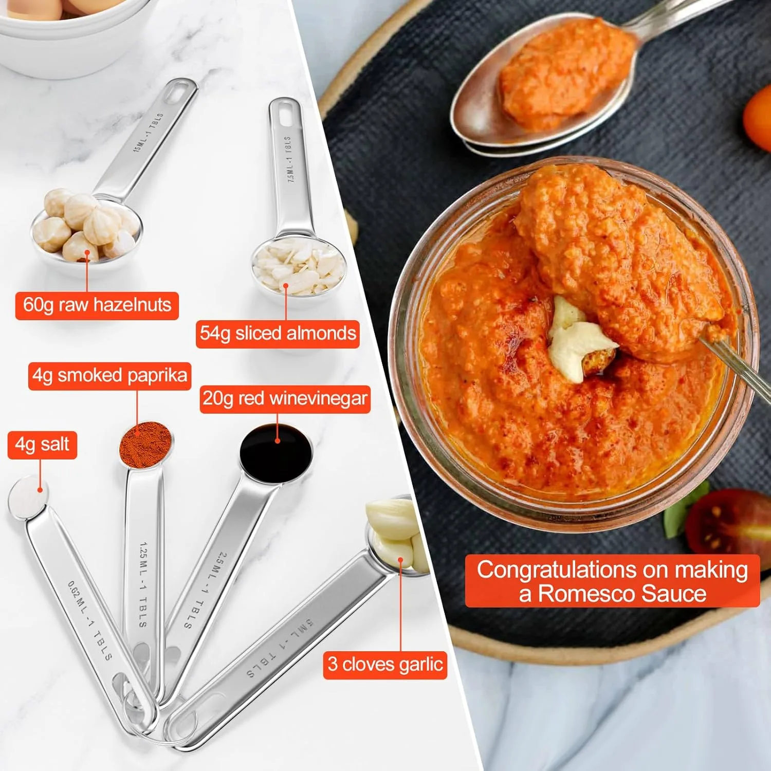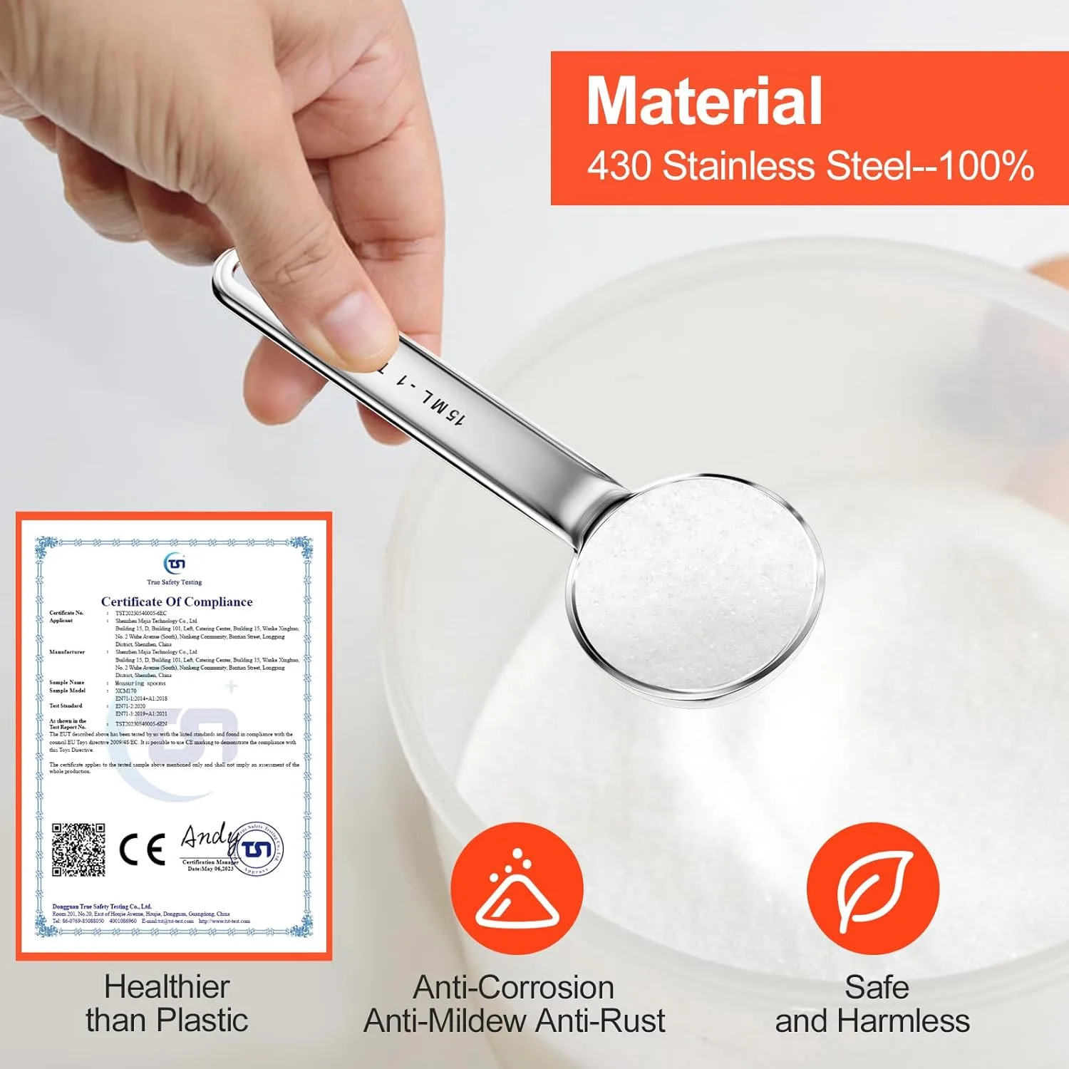 【Alta calidad】 El juego de cucharas medidoras está hecho de acero inoxidable de alta calidad, que es resistente y duradero, no es fácil de doblar o romper, no contiene productos químicos nocivos contenidos en plástico y es más seguro de usar