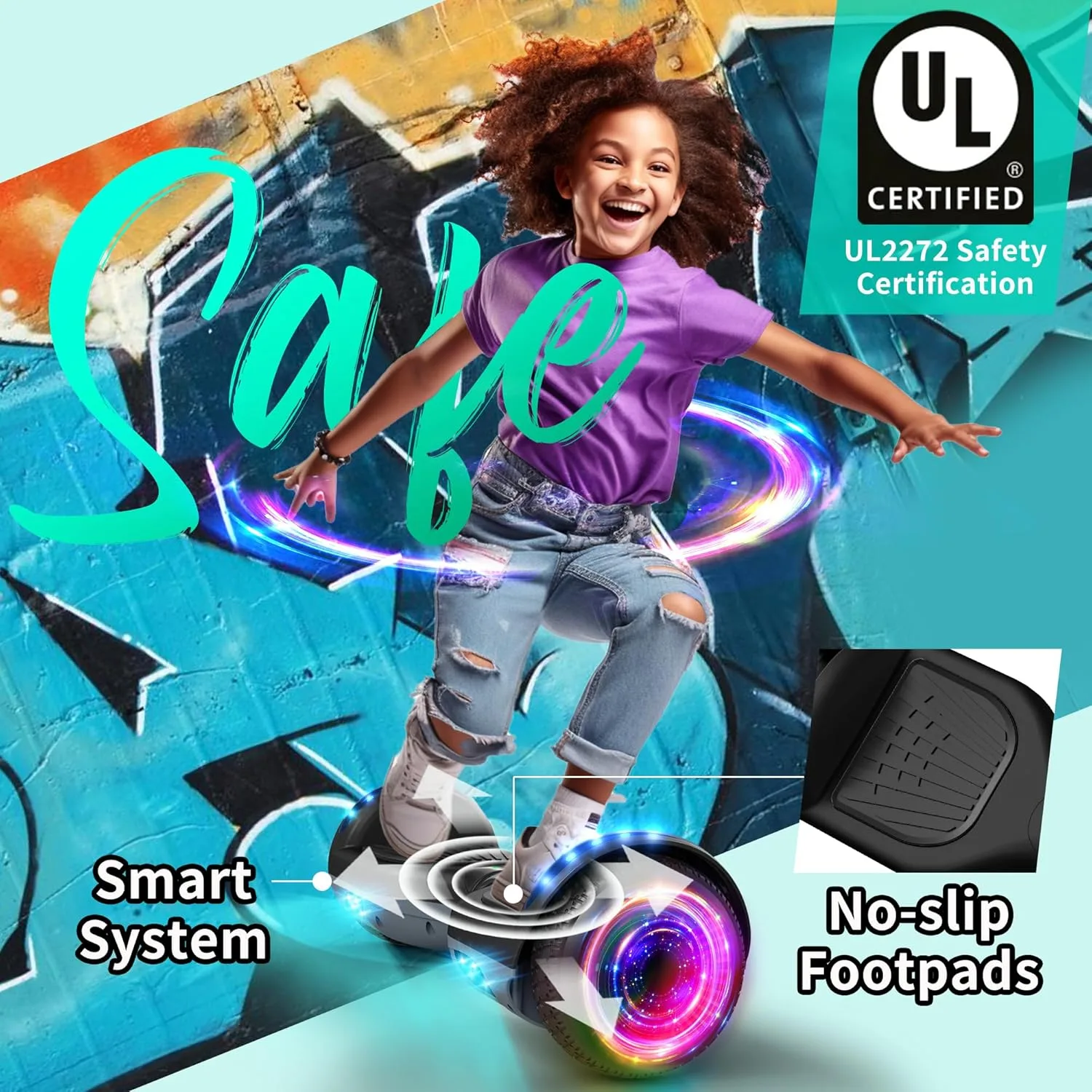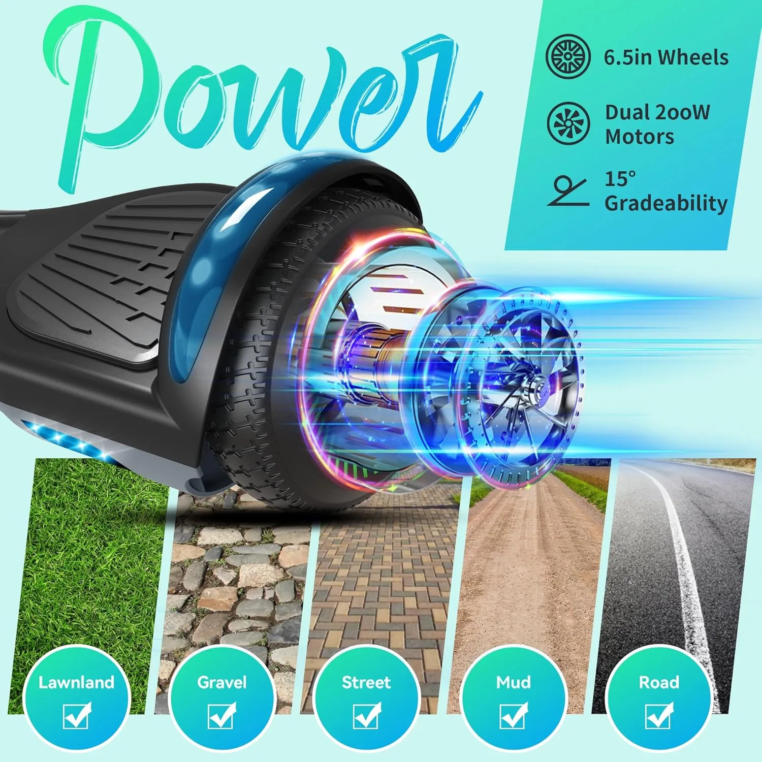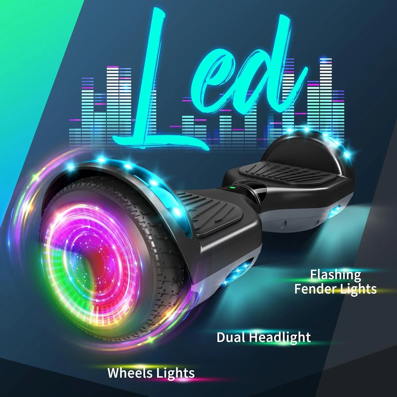 Hoverboard avec roues et phare LED de 6,5 Pouce, Bluetooth, cadeau pour enfants