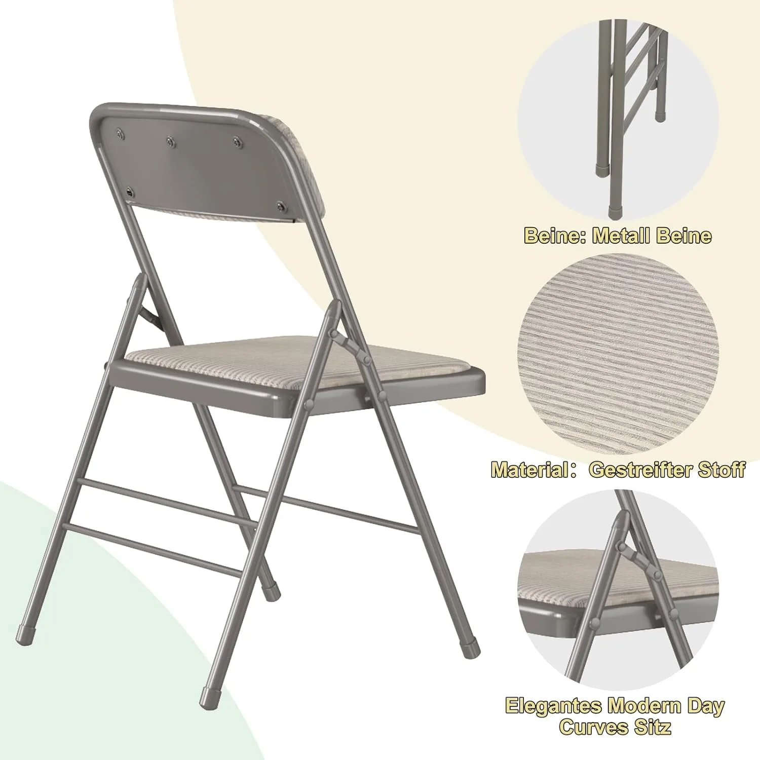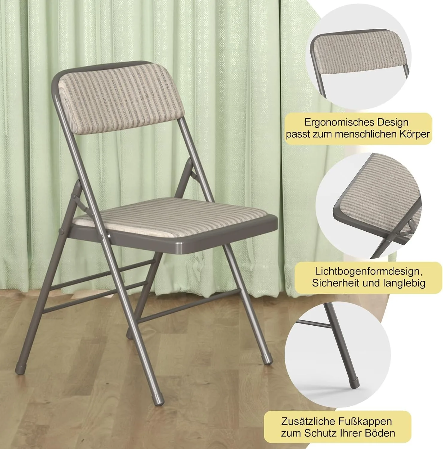 Resumen del producto: ARunThLana Juego de 2 sillas plegables de camping, sillas plegables a rayas con estructura de metal con respaldo, 45 x 48 x 77 cm, para salón, oficina, comedor, beige